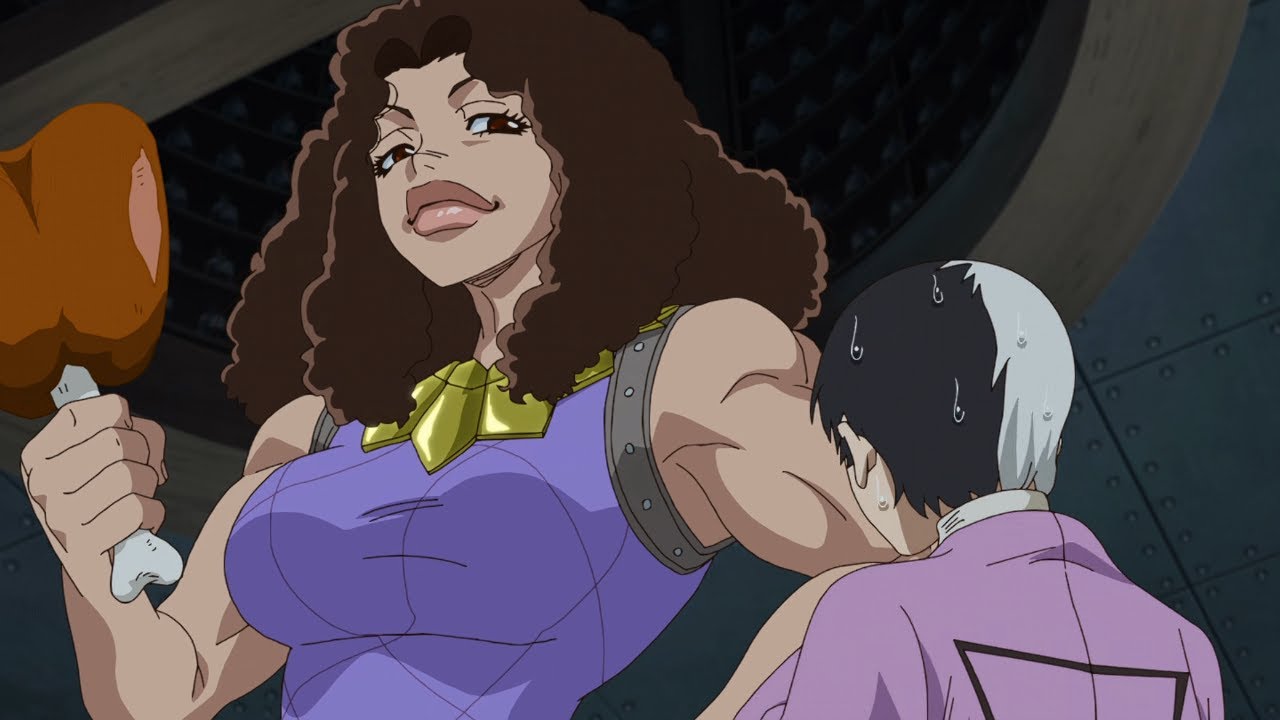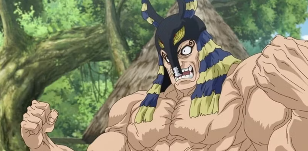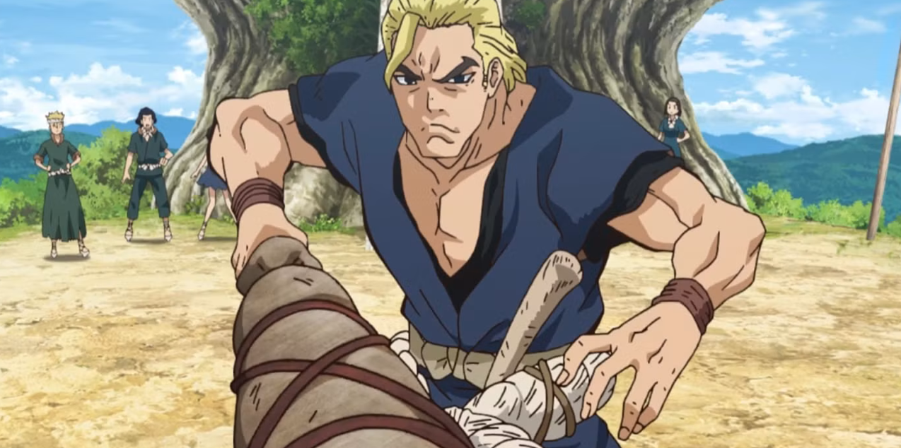 Доктор Стоун в основном о том, как использовать науку для перезапуска цивилизации после крупной катастрофы. Но даже с наукой физическая сила по-прежнему имеет решающее значение для выживания в мире без современных технологий.