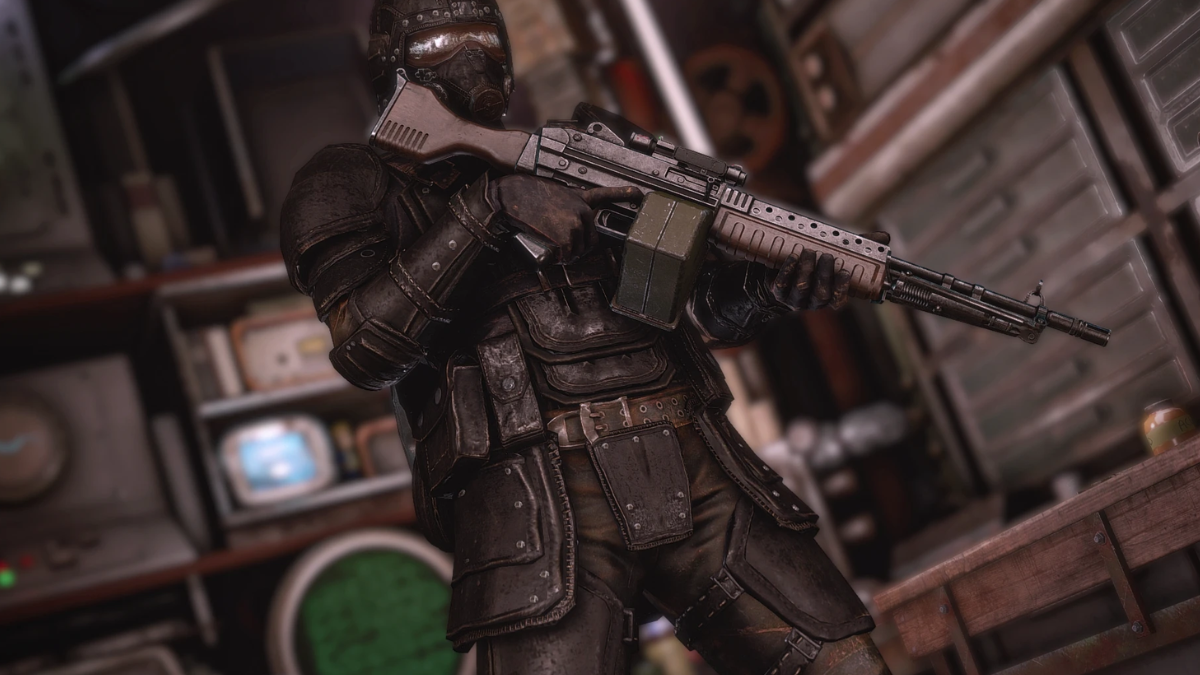Главная особенность этого мода — его снаряжение. Он представляет воссозданные версии Laser RCW и Plasma Defender из New Vegas, а также классические доспехи. Вы сможете легко найти это оружие у торговцев и получать его в качестве дропа от врагов.