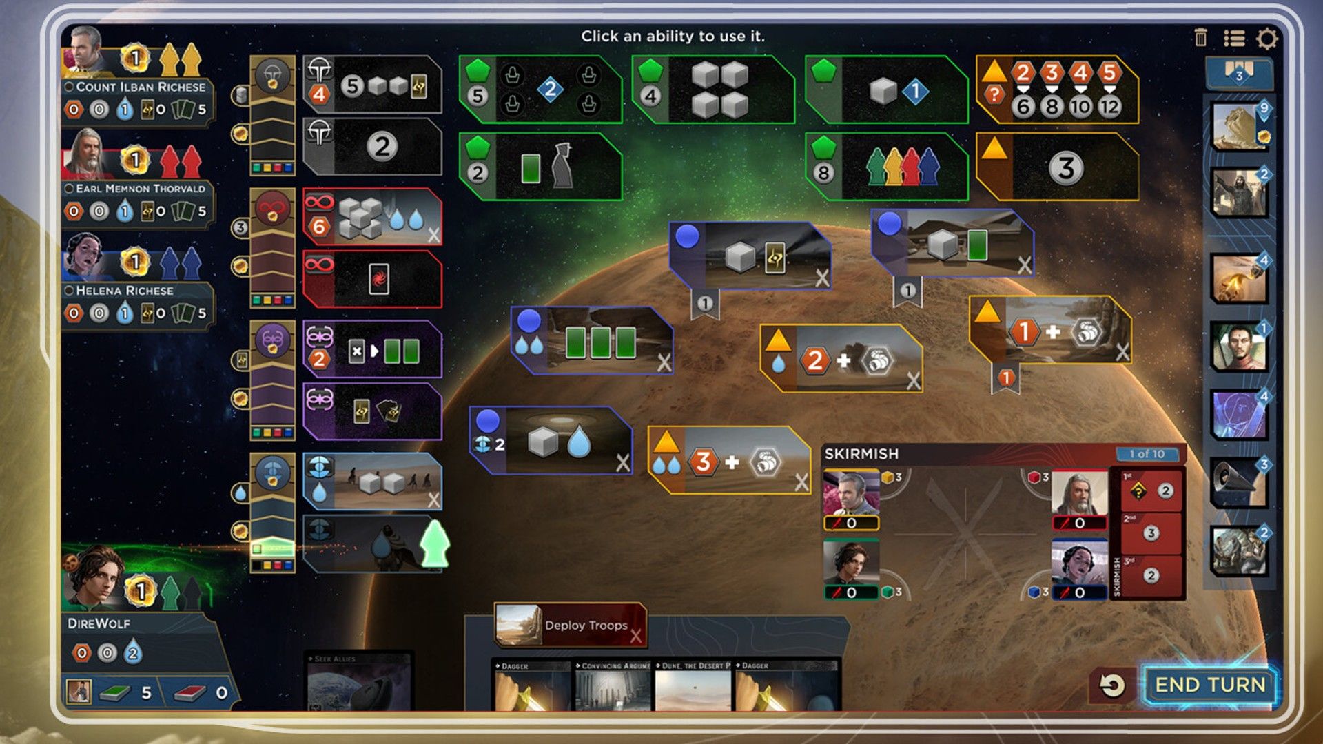 Dune: Imperium — это фантастическая настольная игра, адаптированная для Steam, предлагающая как надежный онлайн-режим, так и увлекательный одиночный игровой процесс. Кроме того, все её DLC доступны, гарантируя, что у вас всегда будет достаточно контента для игры.