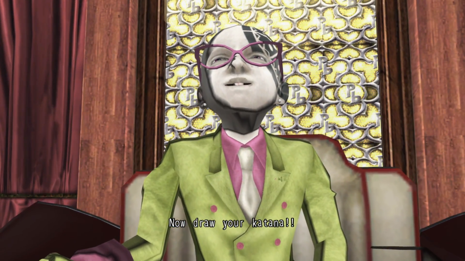 Я слышал, что чем больше денег ты зарабатываешь, тем меньше беспокоишься о том, что думают другие. Не уверен, что это полностью правда, особенно сейчас, но я могу понять, как быть супер богатым и влиятельным может дать тебе уверенность просто носить то, что хочешь. Например, возьмите Джаспера Батта-младшего, финального босса в No More Heroes 2 — он пришел на работу в… это. Серьезно, это был выбор.