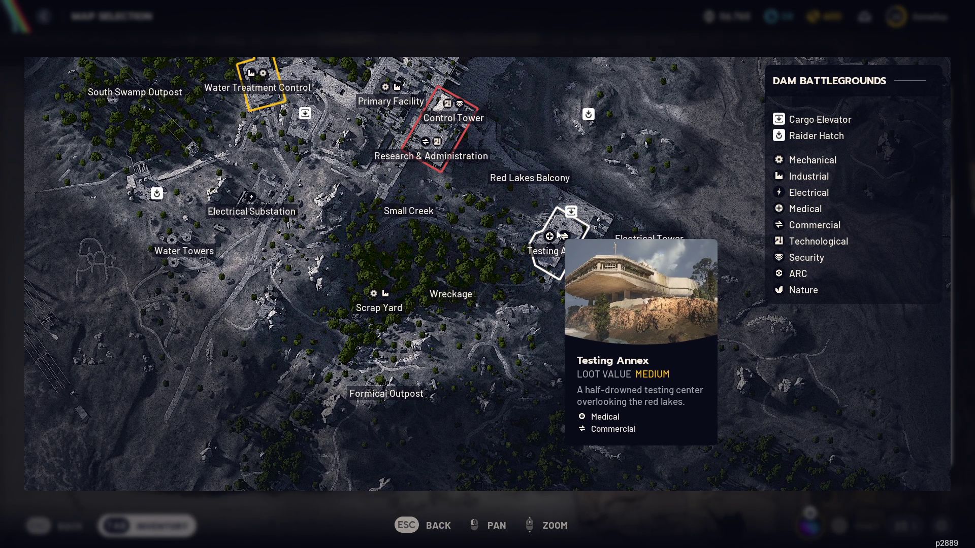 Есть действительно хорошее место для поиска добычи в середине карты, и оно становится еще лучше, если вам повезет появиться рядом. Если у вас есть Ключ от Испытательного Аннекса, вы можете получить дополнительную добычу, но даже без него, скорее всего, вы найдете там ценные предметы.