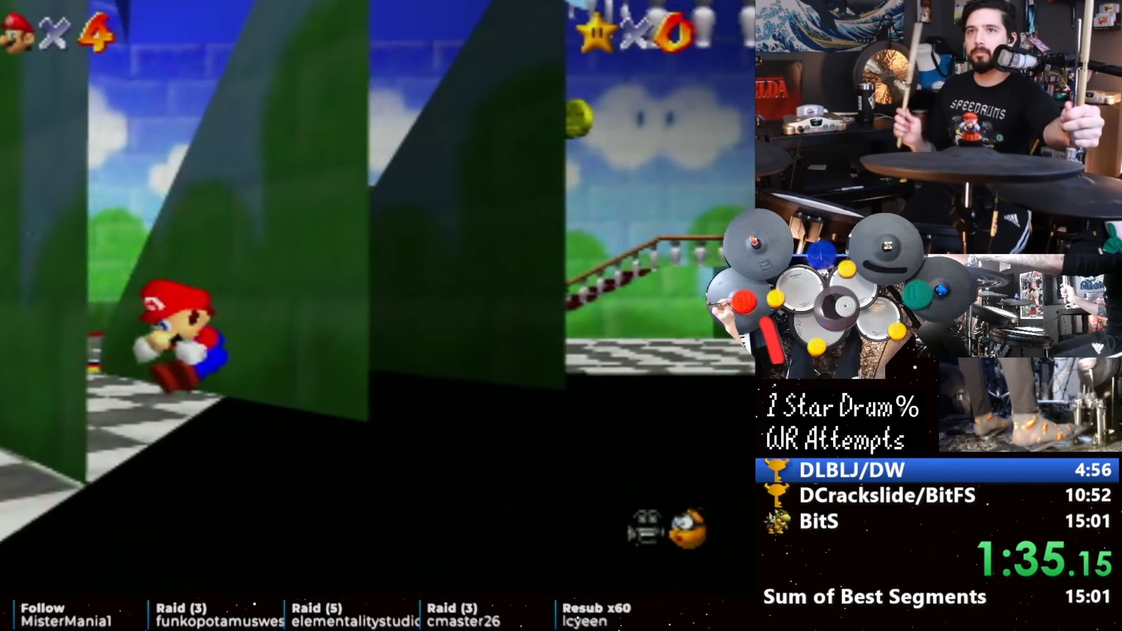 Super Mario 64 можно пройти спидран на барабанной установке, получив только одну звезду.