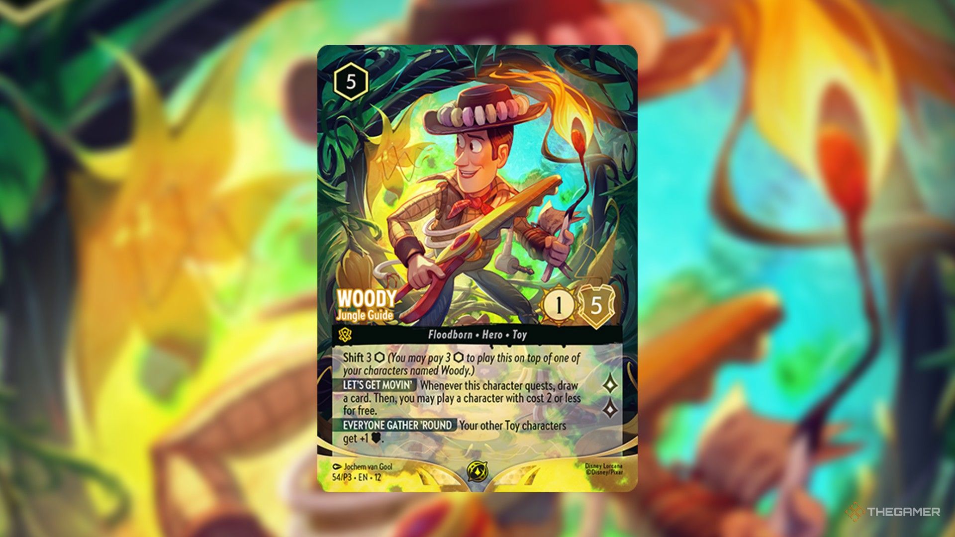 Buzz объединяется с Меридой в качестве специальных, редких персонажей в Wilds Unknown. Возможно, вы спрашиваете, что происходит с Вуди, и он тоже получит специальную карту! Это промо-карта, которая будет раздаваться на мероприятии Set Championship. Будет два разных варианта промо-карты Вуди: один для всех участников и специальная версия для восьми лучших игроков.