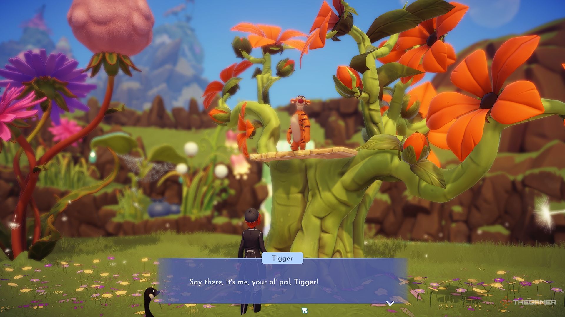 Как только вы достигнете уровня связи четыре с Ханом, он сможет сломать металлическое препятствие в Glamour Gulch, наконец позволив вам войти в Pixie Acres. Внутри вы найдете Тиггера, прыгающего и застрявшего на дереве. К счастью, с помощью Tinker Bell вы сможете сварить зелье, чтобы спустить его.