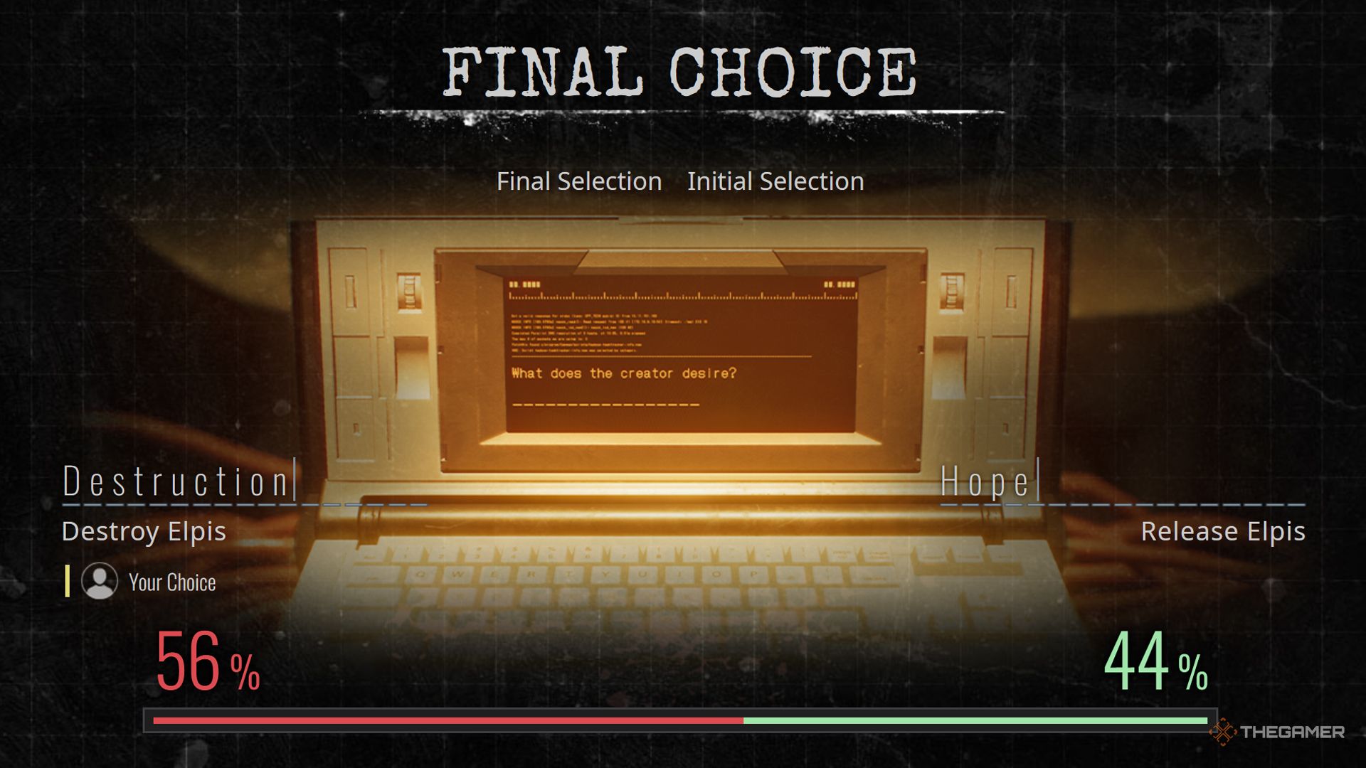 Хорошо, получить другую концовку в игре на самом деле довольно просто – всё зависит от того, выберете ли вы уничтожить или спасти Elpis. Если в итоге вы получите концовку, которая вам не понравится, пожалуйста, не смотрите прохождение на YouTube! Серьёзно, сделайте себе одолжение и пройдите игру ещё раз. Есть много чего интересного, что можно испытать, сделав другой выбор, и гораздо приятнее увидеть это своими глазами.