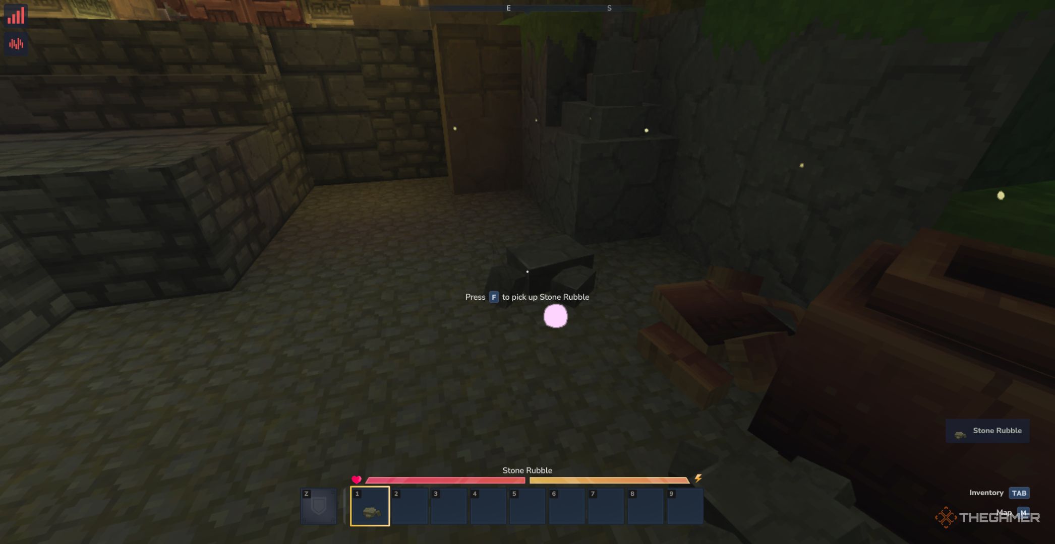 Когда вы начинаете новую игру в режиме исследования, вы окажетесь в безопасной стартовой зоне. Соберите несколько каменных фрагментов, разбросанных по этой комнате, и затем вы сможете выйти и начать исследовать мир.