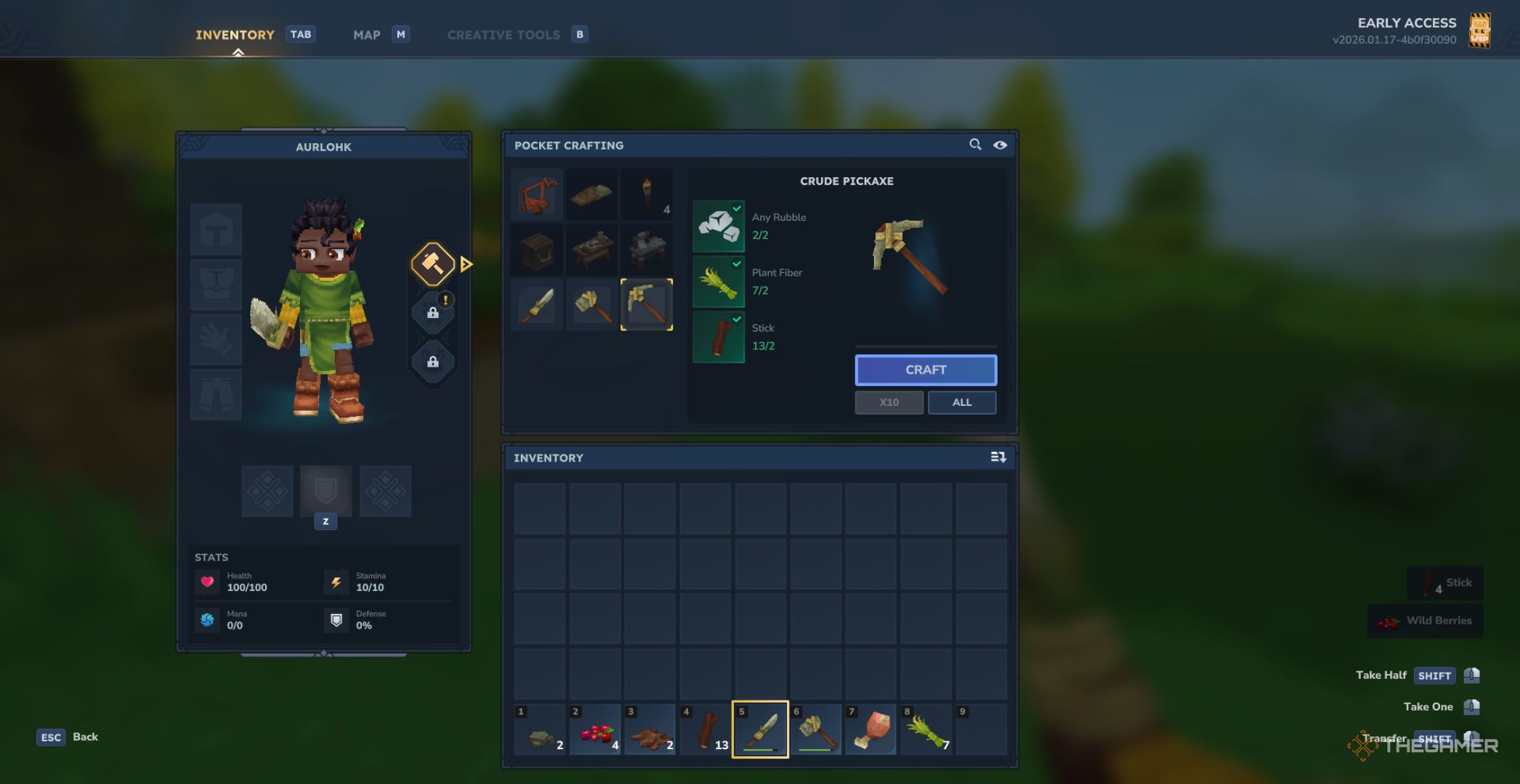 Начните со сбора палок и камней с земли. Также сломайте несколько кустов, чтобы получить растительное волокно, и соберите как можно больше диких ягод – они станут вашим первым источником исцеления.