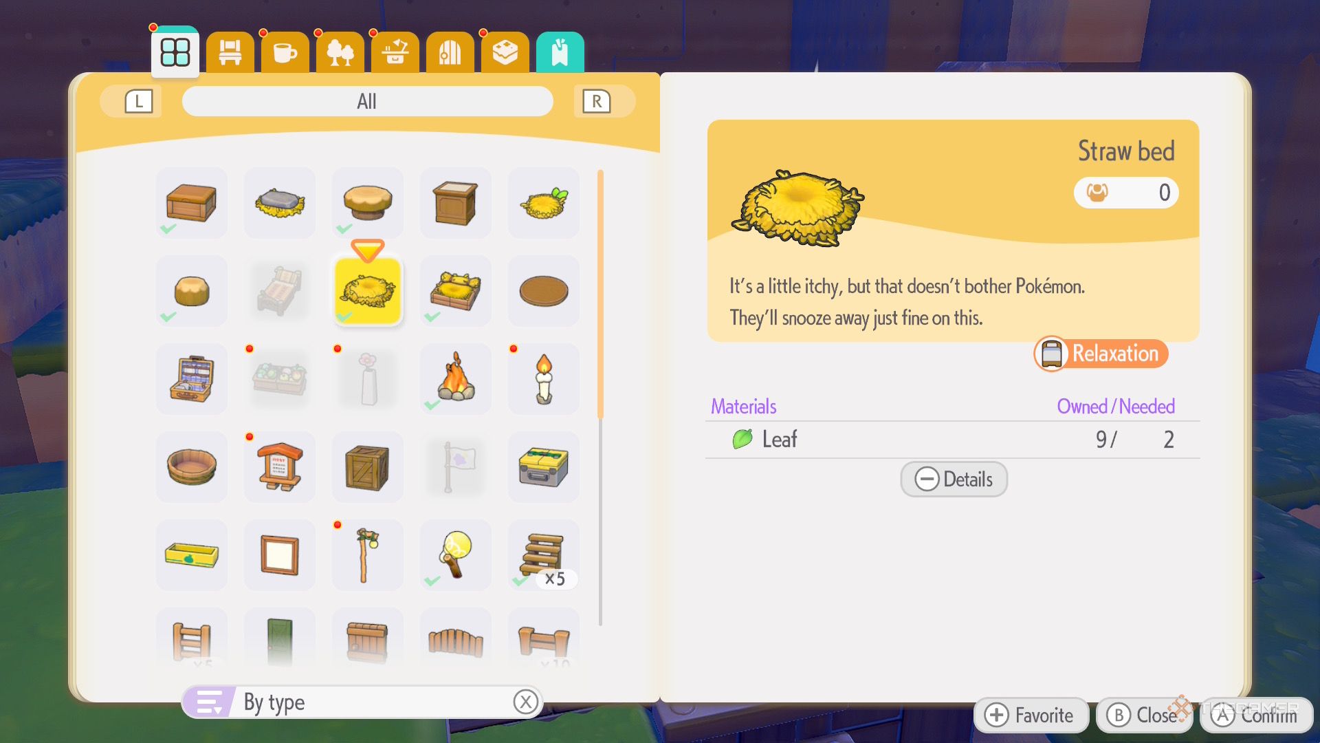 Вы можете использовать любой тип среды обитания, но некоторым потребуются места для отдыха покемонов, такие как кровати или скамейки. Брёвнышки-кровати особенно полезны, потому что в них с комфортом могут поместиться два покемона.