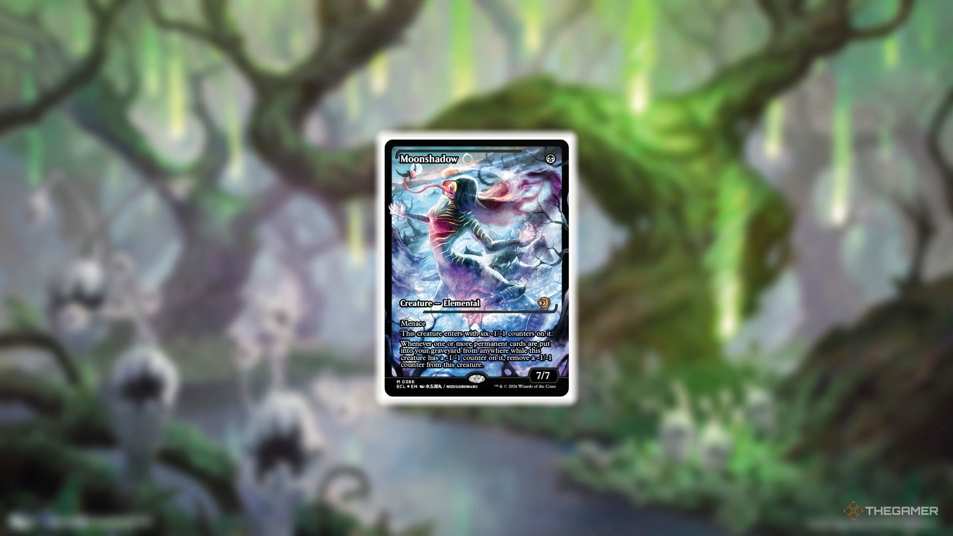 Всего за одну черную ману, Moonshadow — впечатляющее существо — 7/7, которое выходит на поле боя с шестью счетчиками -1/-1 на нем.