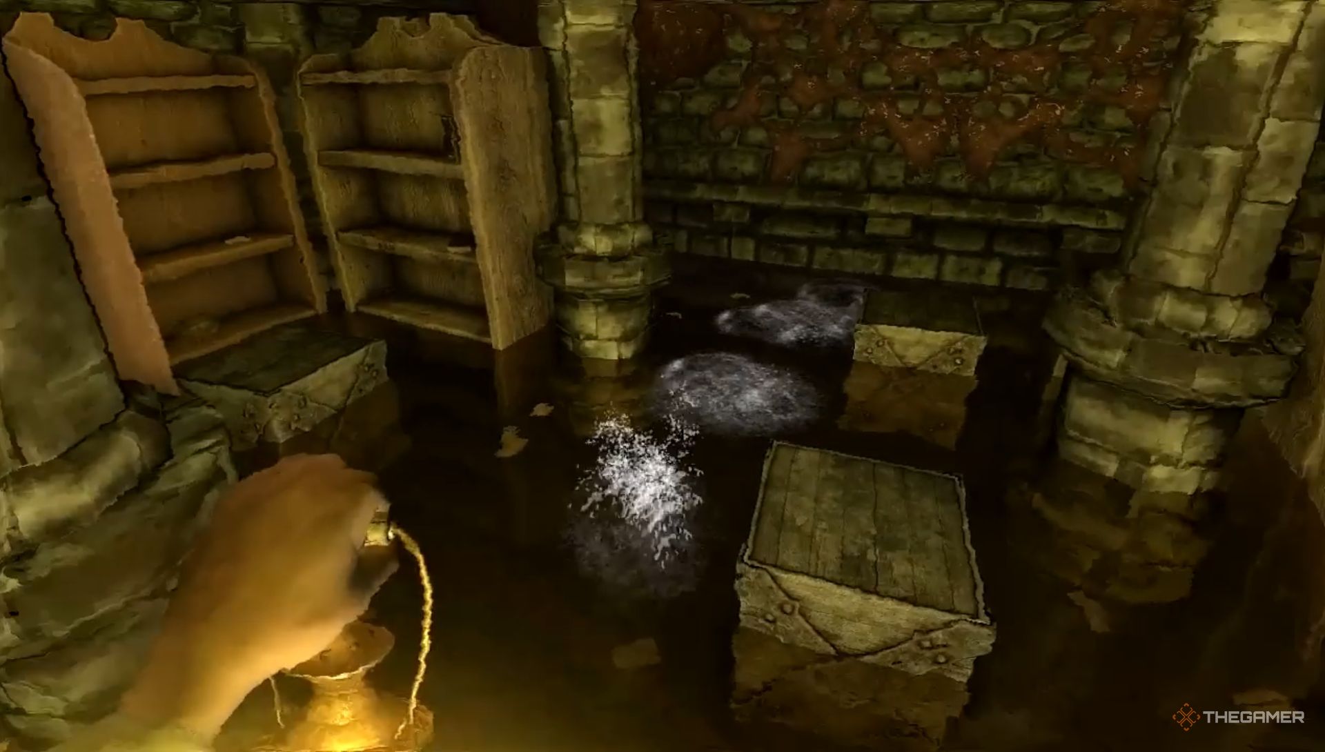Но всё меняется, когда вы доходите до части с водным монстром. Если вы играли в игру, вы помните её – это раздел, где вам нужно перемещаться по затопленной области, и совершенно невидимое существо преследует вас каждый раз, когда вы входите в воду.
