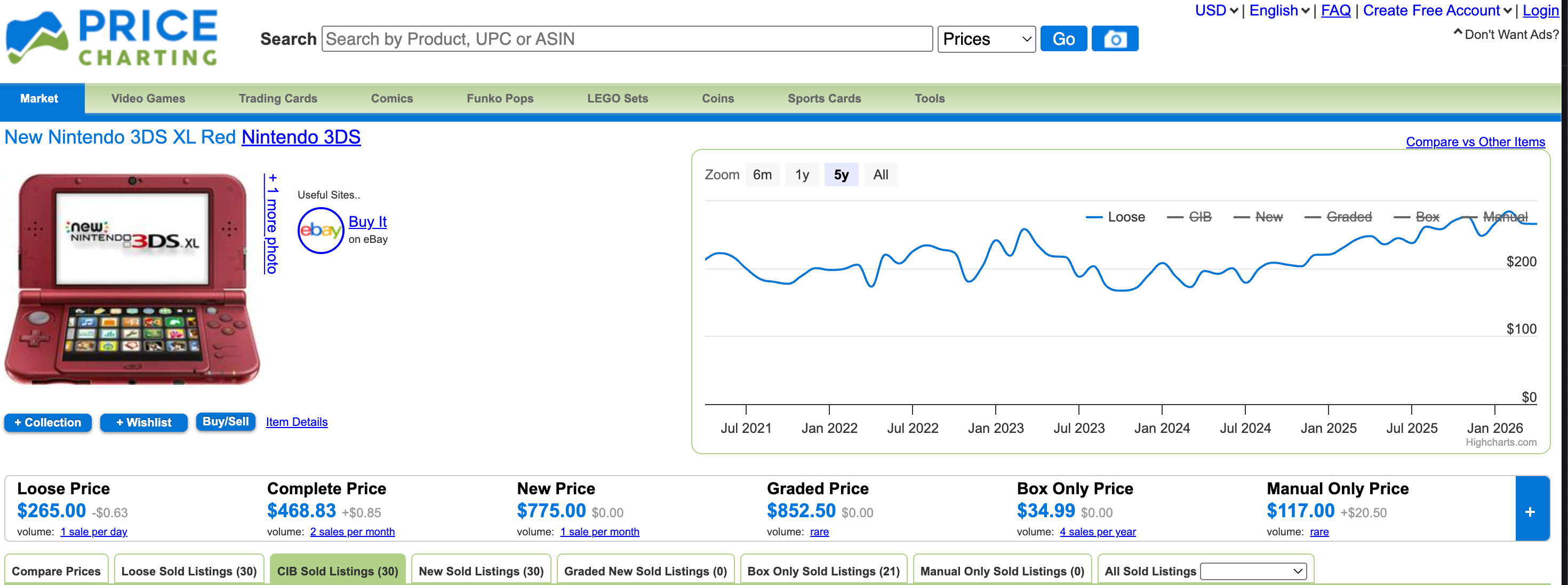 Однако, eBay показывает другую картину. В марте новый набор той же консоли был продан на аукционе за 363 доллара. В настоящее время быстрый поиск показывает красную New Nintendo 3DS XL, выставленную на продажу за 309 долларов, а другая версия, работающая с играми из любого региона, доступна за 294,99 доллара.