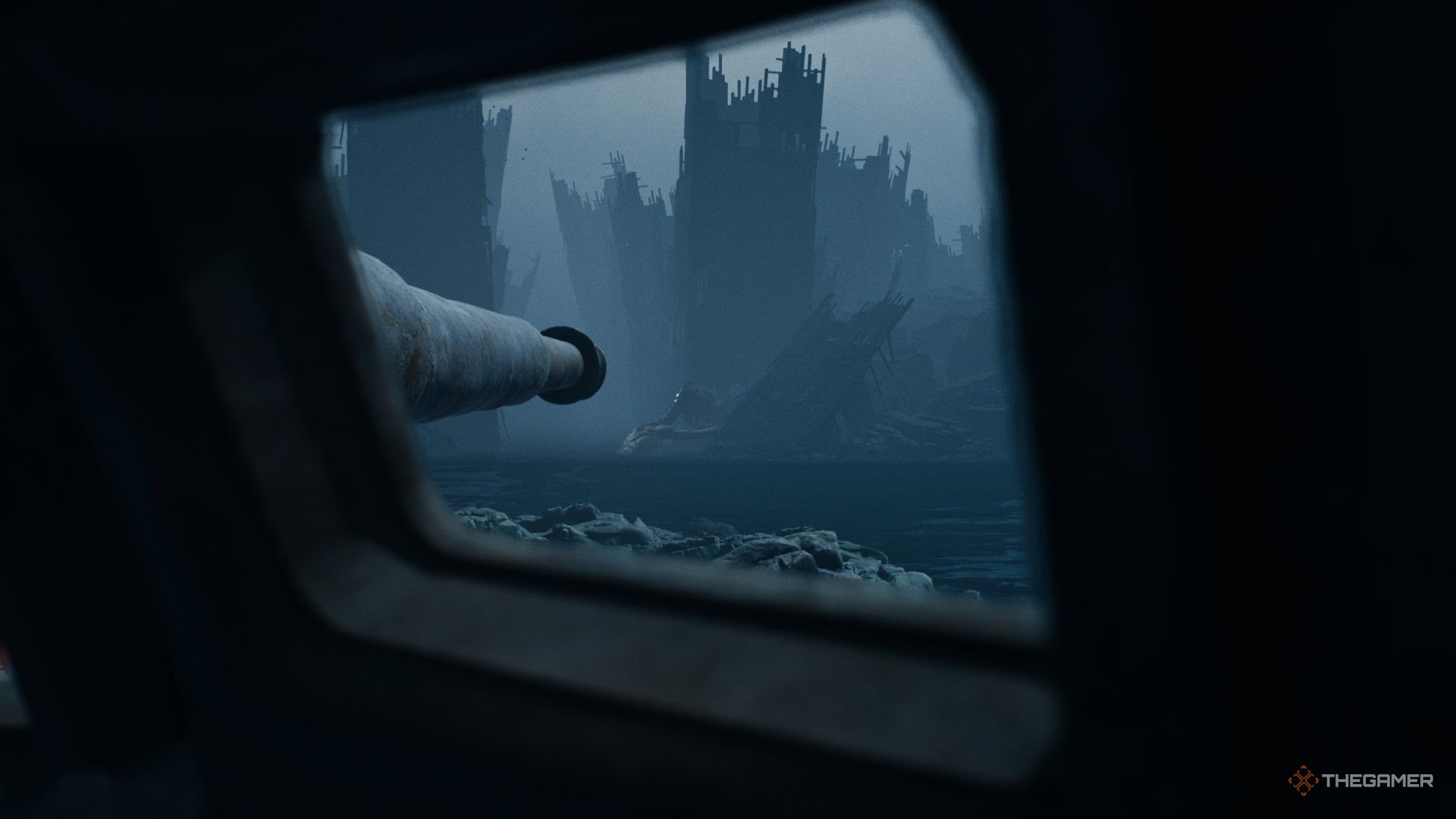 Окей, так этот квест ведёт меня через действительно жуткие места в Reanimal. По сути, мне нужно выследить огромную пушку, а затем использовать её, чтобы расстрелять этого огромного морского монстра, преграждающего мне путь. После этого я исследую обломки старого корабля – это целая атмосфера, и не очень хорошая!
