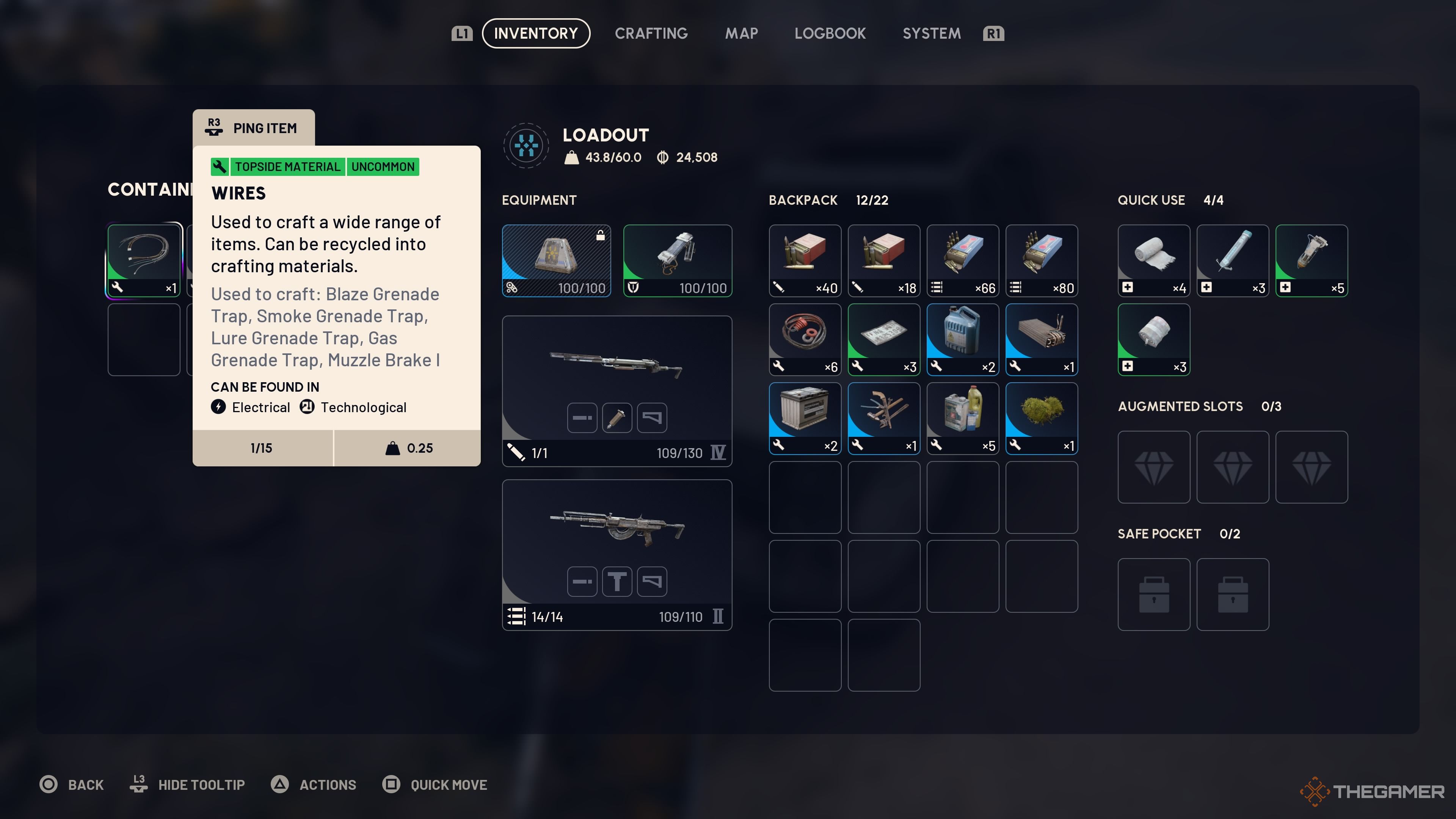 Вы также можете разбирать определенные ценные перерабатываемые предметы, чтобы получить Провода и Батареи, такие как Промышленные Батареи, Силовые Кабели и Процессоры. Однако, обычно лучше находить эти компоненты отдельно, потому что вам часто понадобятся эти материалы для улучшения ваших станций крафта или изготовления других предметов.