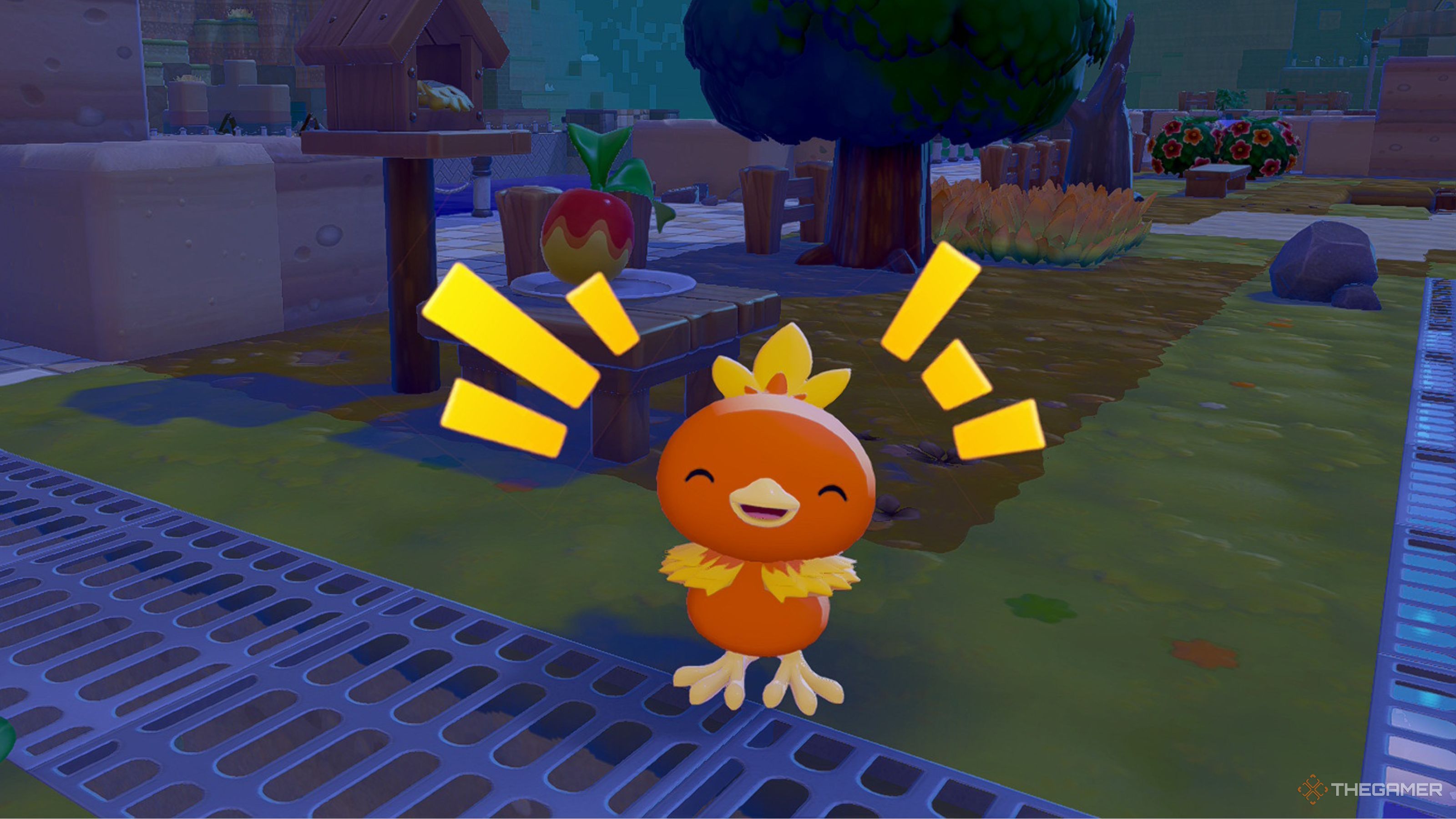 Просто поместите тарелку на стол – в данный момент она находится сбоку. Затем положите на тарелку обычный продукт питания, например, Leppa Berry. После создания этой небольшой среды обитания часто проверяйте, не трясётся ли скворечник. Если трясётся, взаимодействуйте с ним, и вы обнаружите внутри Torchic.