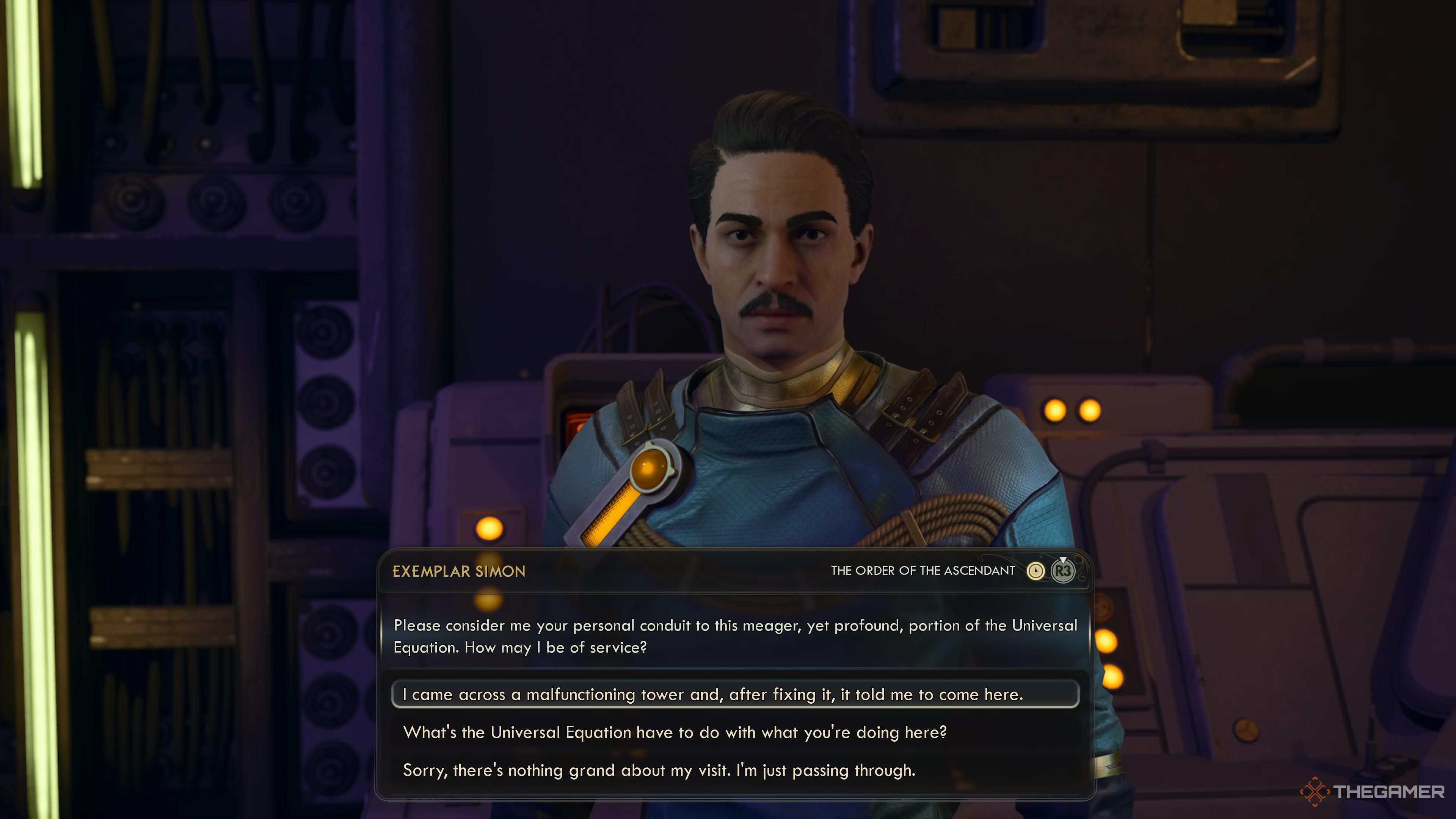 Он приветствует вас и настоятельно рекомендует поговорить с Образцовым Саймоном. Вы можете найти его на вершине башни, которую сковала молния, но Представитель Ордена говорит, что есть более простой путь: просто обойдите холмы, чтобы добраться туда. Это быстрая поездка, намного проще, чем подниматься по башне во время квеста ‘A Final Death For Gravity’ на Острове Рая.