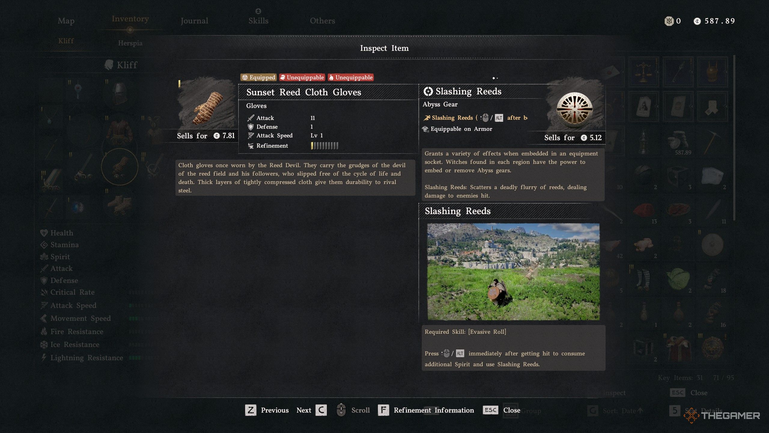 После победы над Демоном Тростника вы получите перчатки Sunset Reed Cloth Gloves. Эти перчатки начинаются с уровня улучшения 1, с Атакой 11, Защитой 1 и уровнем Скорости Атаки 1. Они также обладают двумя специальными способностями. Первая, Slashing Reeds, позволяет контратаковать, нажав B на Xbox или Circle на PlayStation, когда вас ударили, выпуская разрушительный поток тростника в вашего нападающего. Кроме того, перчатки обеспечивают небольшое восстановление здоровья – 0.2 здоровья в секунду – что может быть полезно во время более продолжительных сражений.