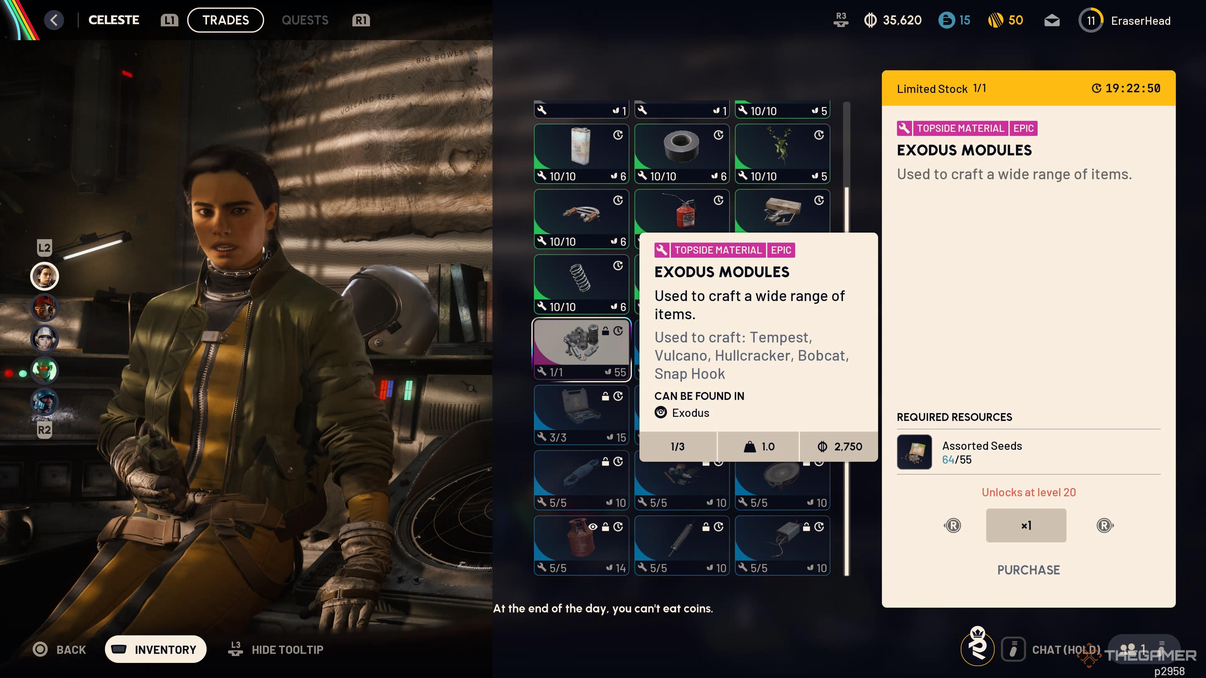 Если у вас возникли проблемы с поиском модулей в Rocket Assembly, не волнуйтесь! Вы также можете получить модуль Exodus, посетив магазин Селесты и обменивая 55 разнообразных семян.