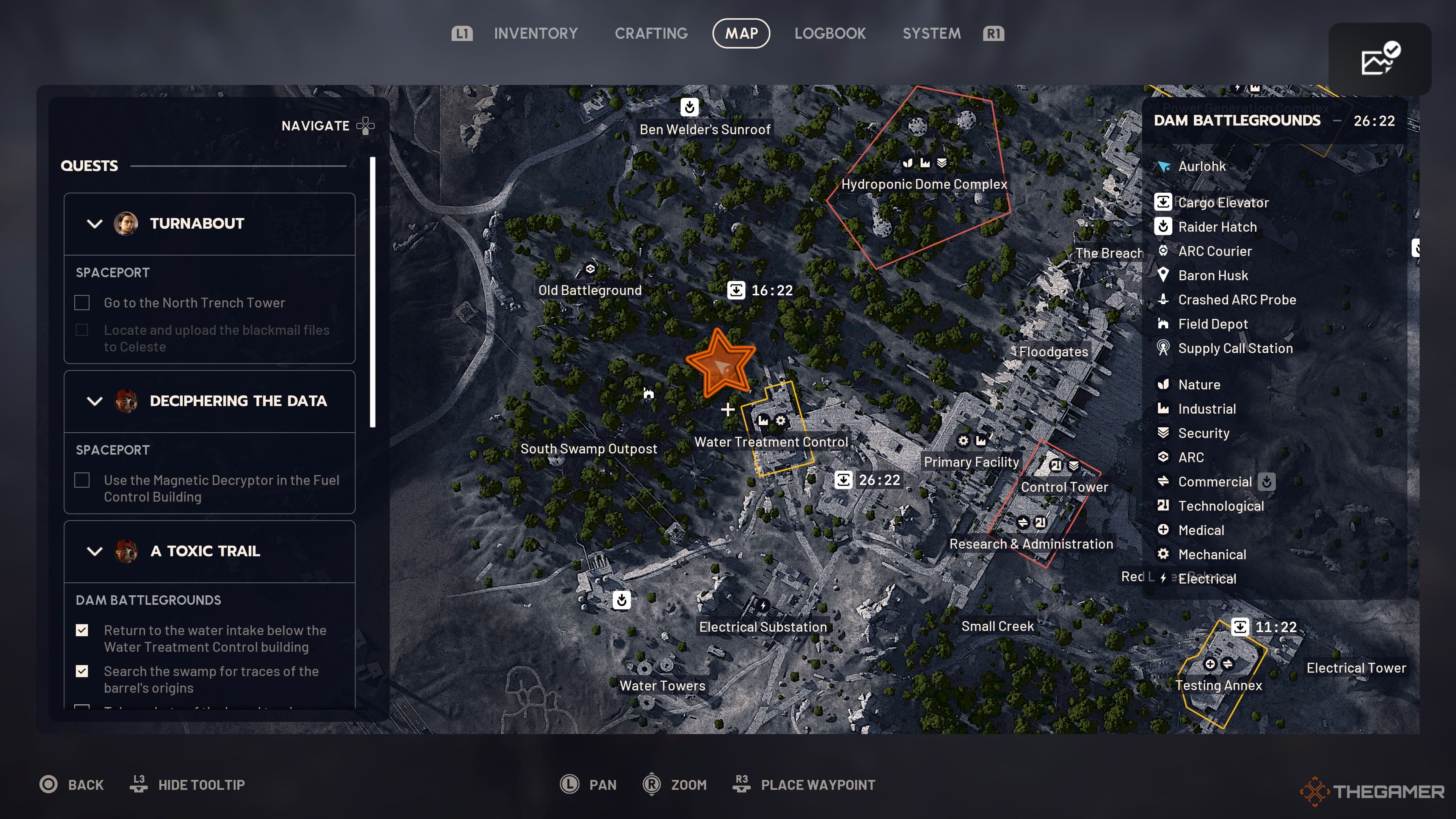 Итак, я продолжаю историю с ‘The Source of Contamination’, и первое, что вам нужно сделать, это отправиться в Water Treatment Control на Dam Battlegrounds. Как только вы туда доберётесь, обойдите здание на северную сторону. Вы ищете наклонную область возле края болота – там есть большой заграждённый водозабор, так что это довольно заметно!