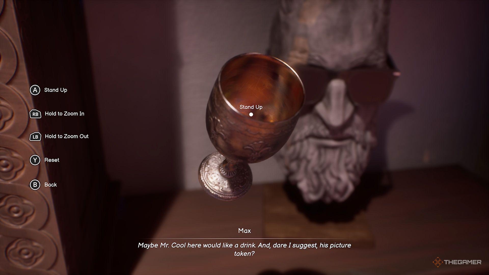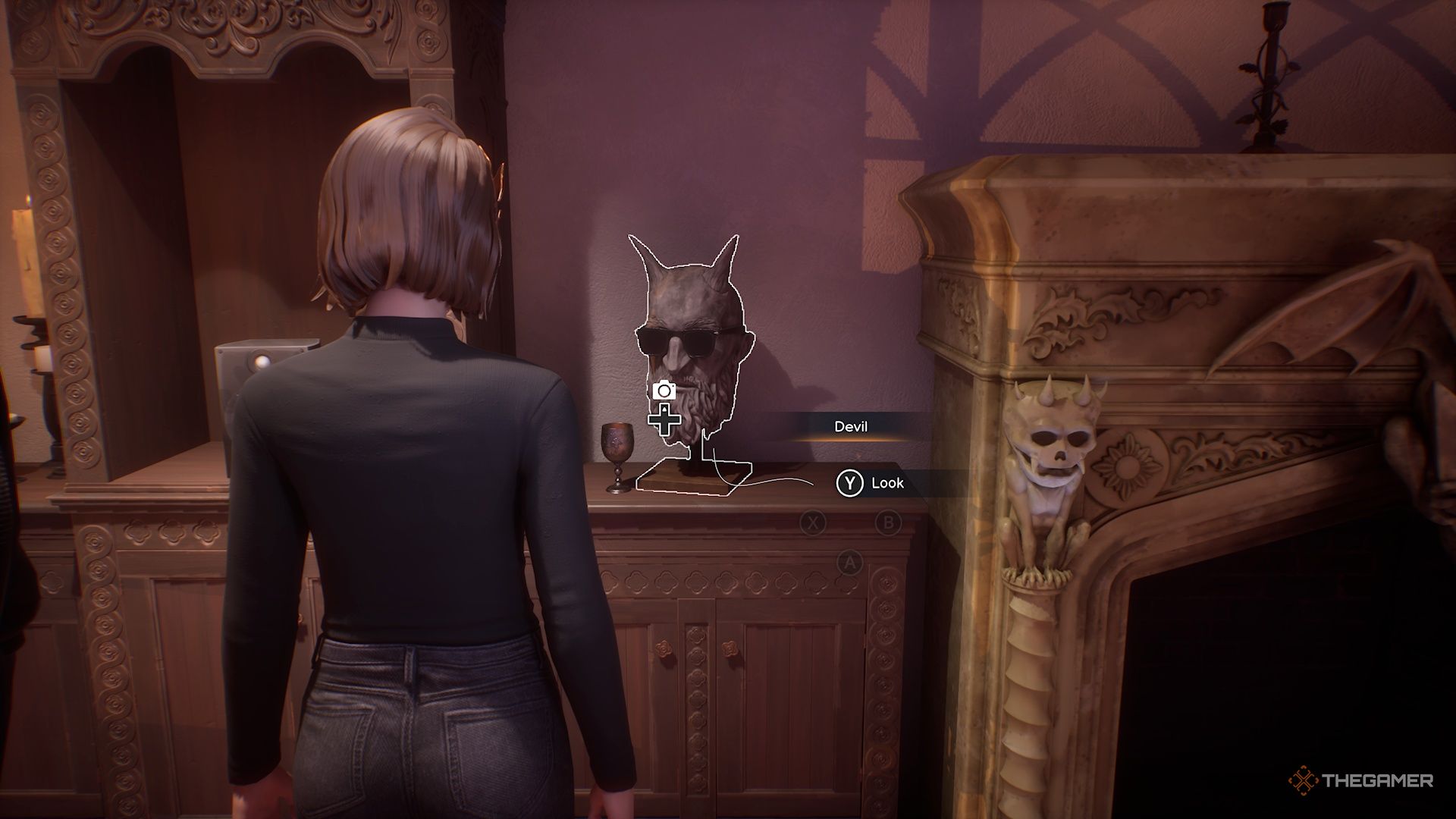 Окей, значит, когда вы впервые войдёте в дом Abraxas на вечеринке Mabon, сразу же поверните налево. Вы увидите камин, а прямо рядом с ним – жуткую статуэтку Дьявола с кубком, стоящим перед ним. Если внимательно присмотреться к кубку, вы сможете перемещать его – продолжайте делать это, пока игра не предложит вам поставить его. Как только вы это сделаете, вам нужно будет просто сфотографировать статуэтку Дьявола с кубком рядом с ней!
