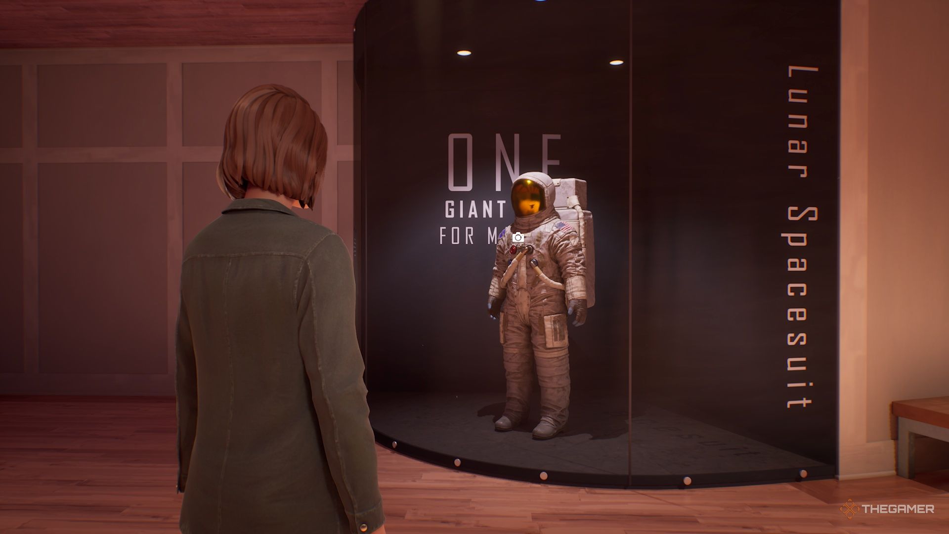 Внутри Обсерватории пройдите мимо лестницы и поверните направо. Там вы найдете лифт. Рядом с лифтом вы увидите скафандр, выставленный за стеклом. Обязательно сделайте его фотографию!