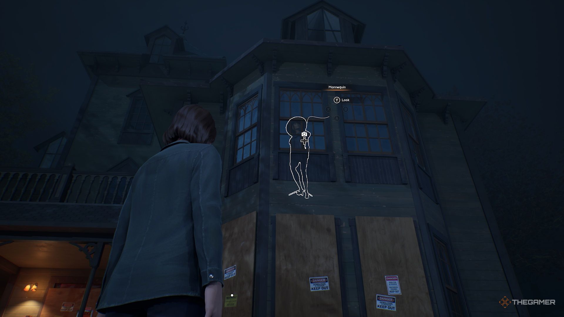 Когда вы впервые приблизитесь к дому Abraxas, вы увидите манекен в окне, смотрящий на вас сверху вниз. Просто посмотрите на него и сделайте снимок.