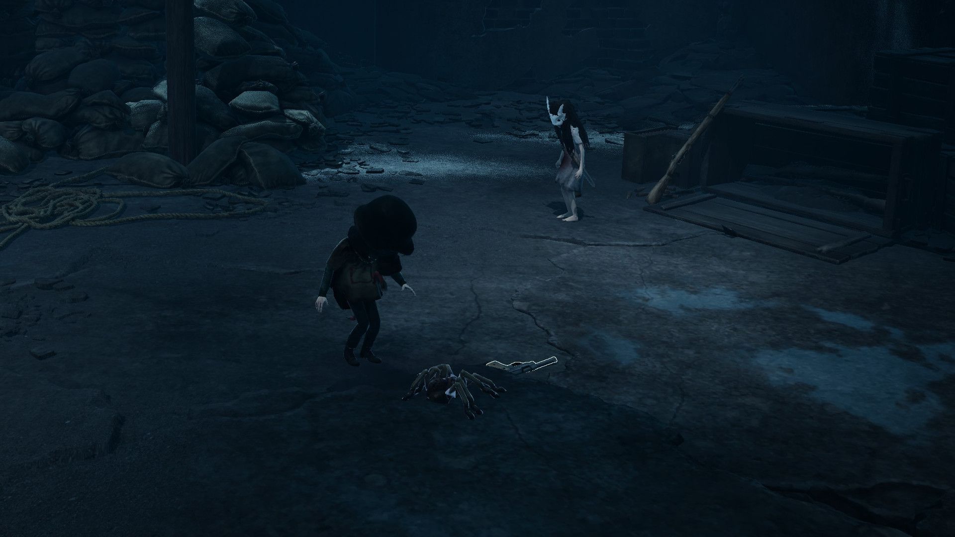 Продолжайте мимо автобусной остановки до самого дальнего конца дороги. Вы увидите дверь, заколоченную деревянными досками. Разбейте эти доски, чтобы попасть внутрь, а затем победите существо, чтобы получить новую маску-воронку.