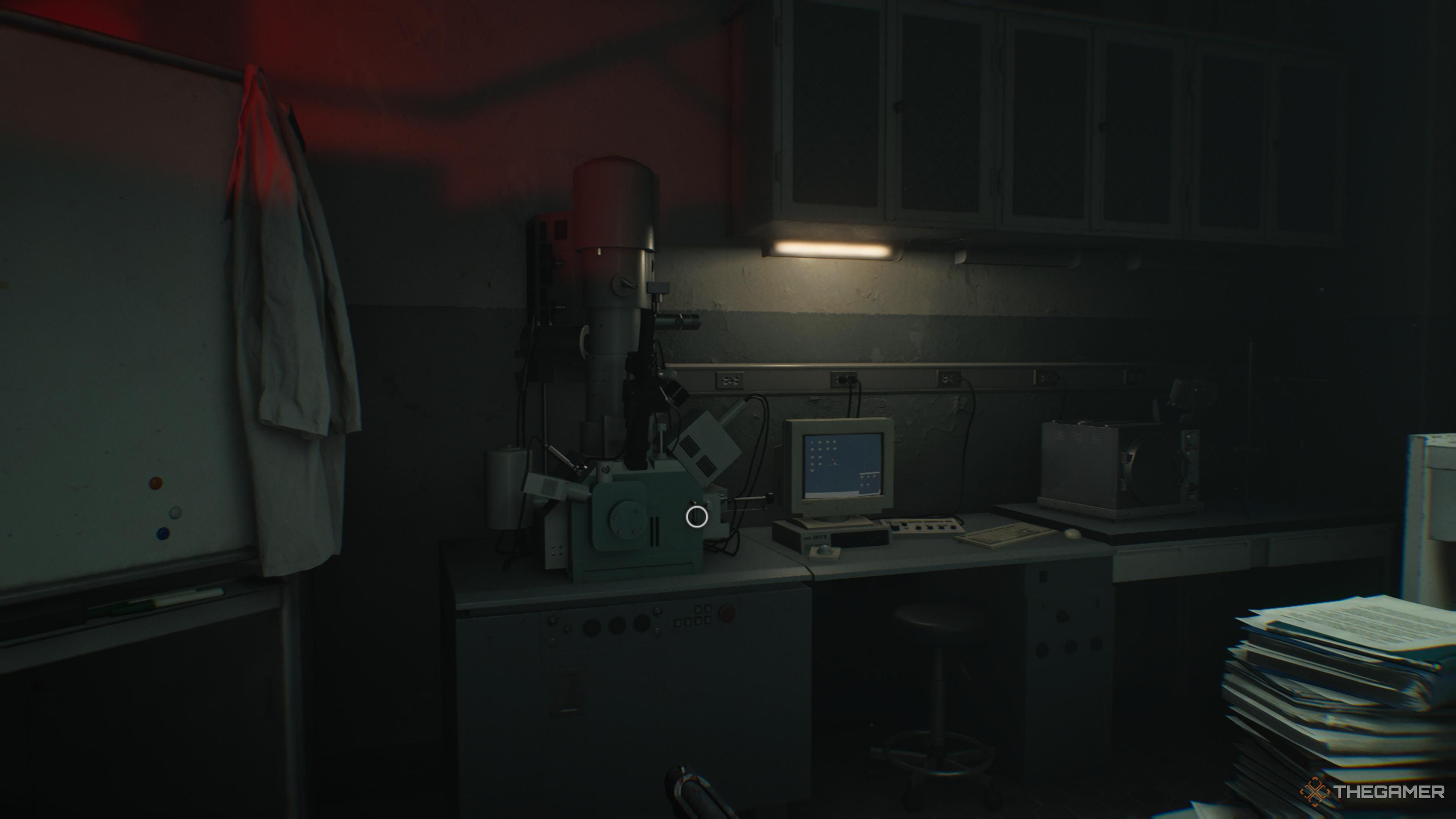 Он находится в Кровной Лаборатории, на восточной стороне Центра Ухода. Он сразу рядом с Анализатором Крови на столе. |
