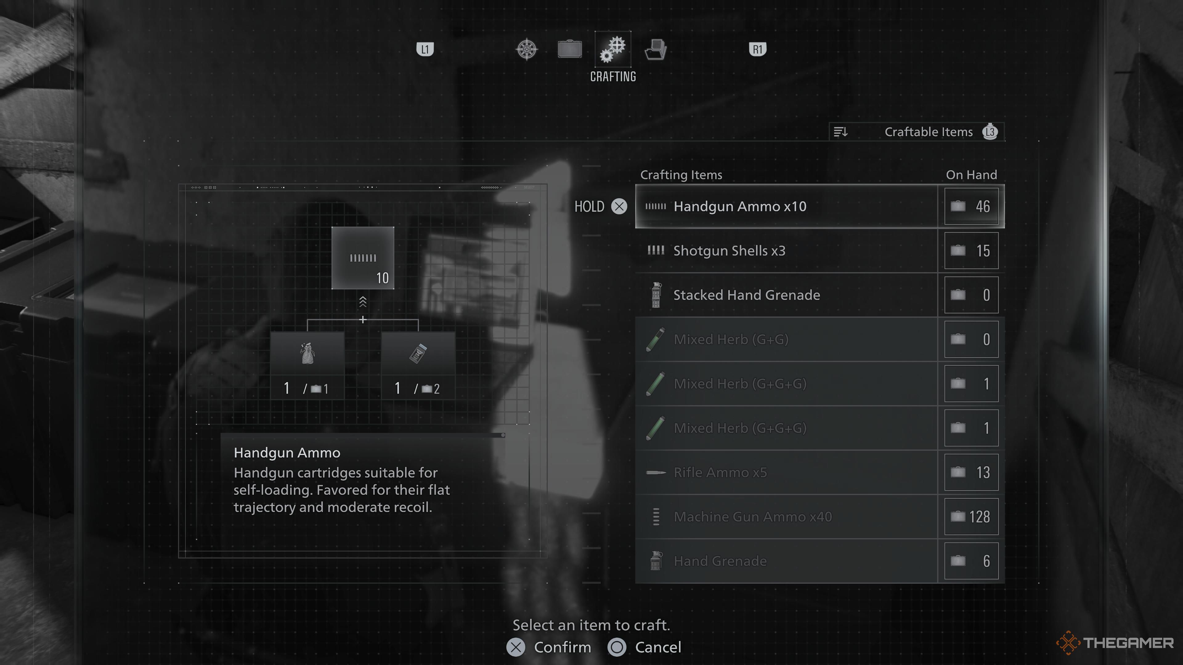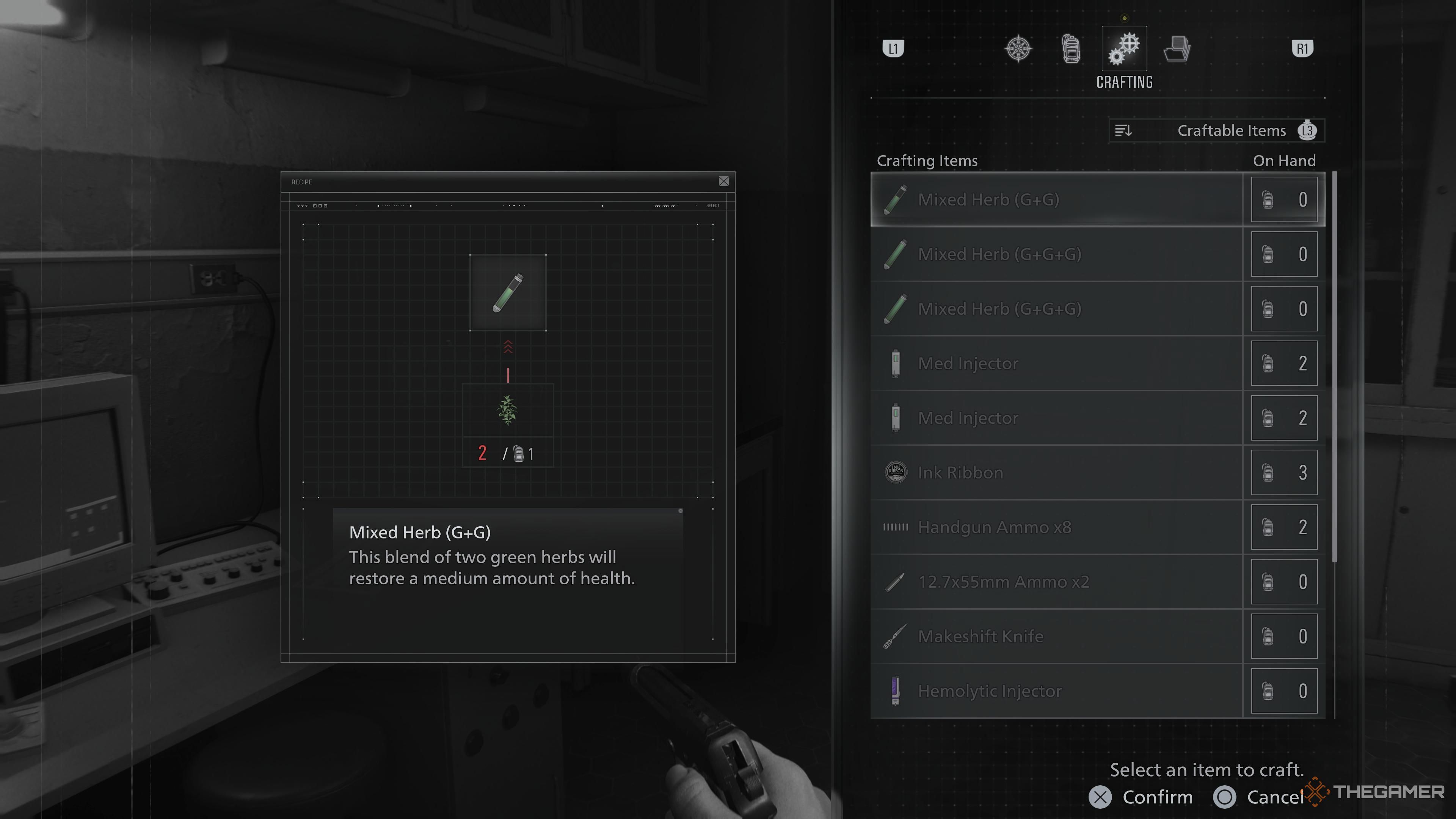 Как только вы соберете материалы, такие как Scrap и Herbs, вы сможете начать создавать предметы. Просто откройте свой Inventory, переключитесь на вкладку Crafting и выберите то, что хотите создать, используя имеющиеся у вас ресурсы. Это будет особенно важно, когда у вас начнет заканчиваться ammo.