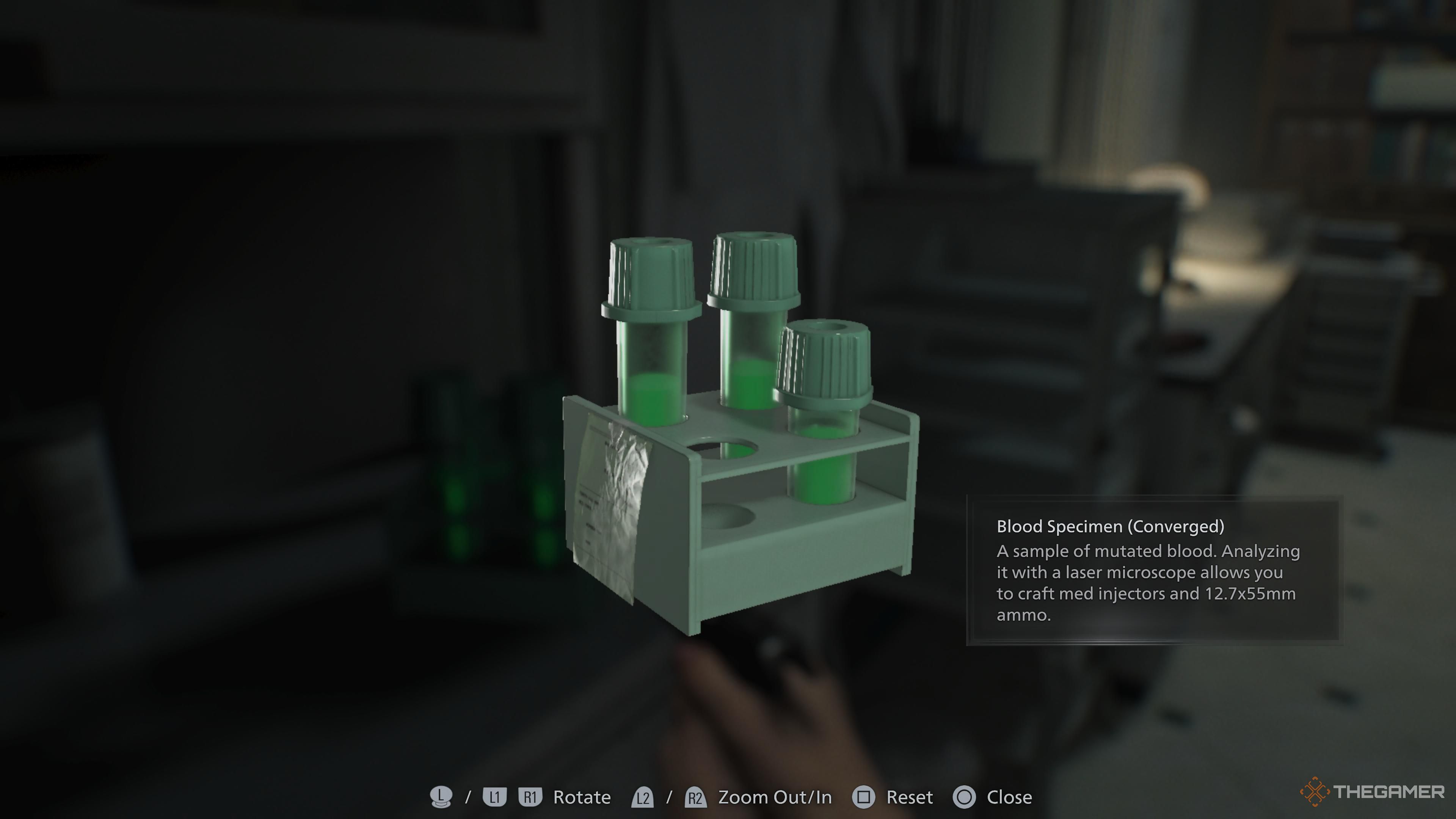 Помимо сбора ресурсов, Грейс сможет использовать Коллектор Крови для получения крови. Вам потребуется заражённая кровь для многих рецептов крафта, и вы можете найти её, исследуя Центр Ухода в поисках контейнеров, или как редкий лут с побеждённых врагов.