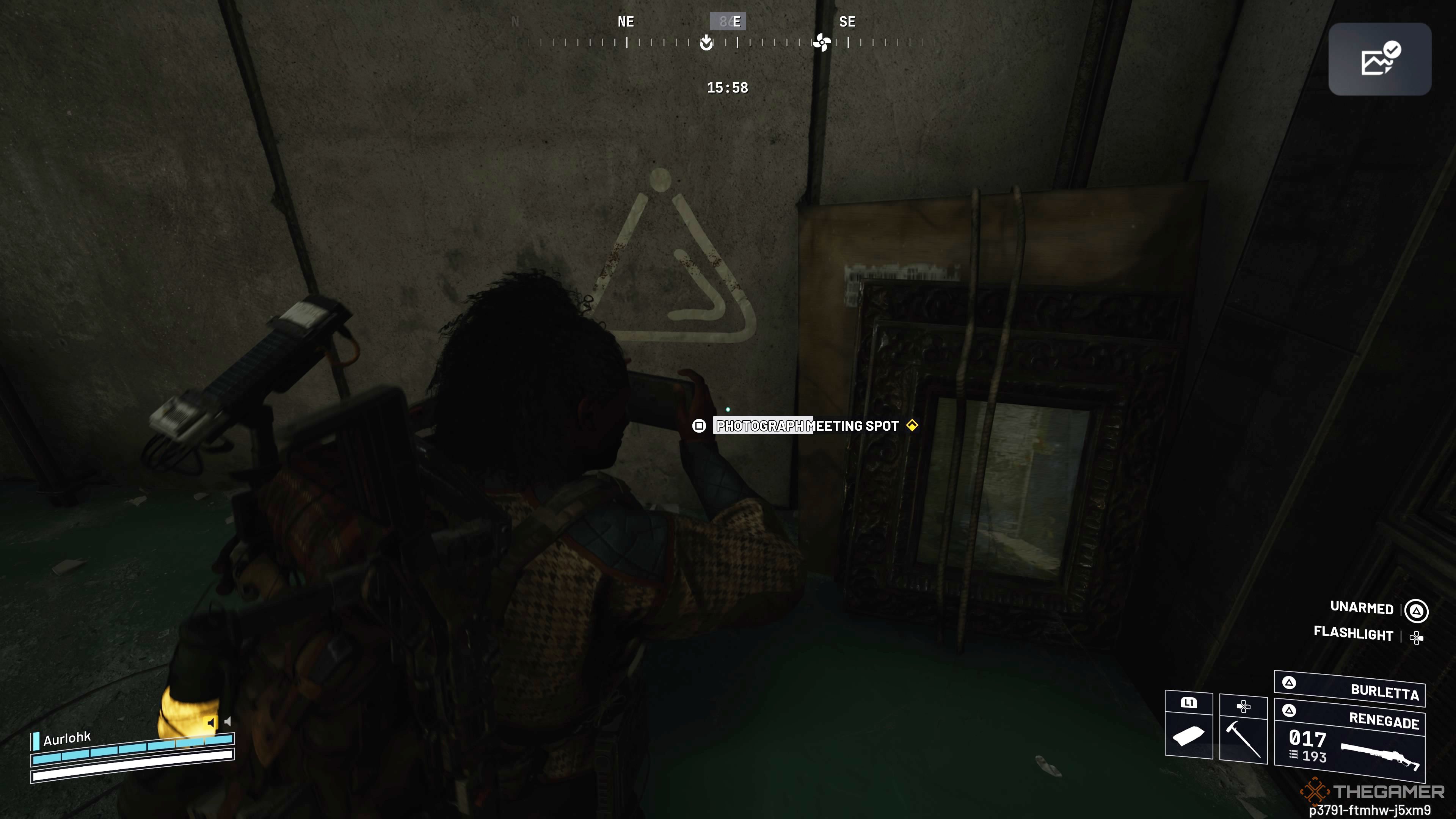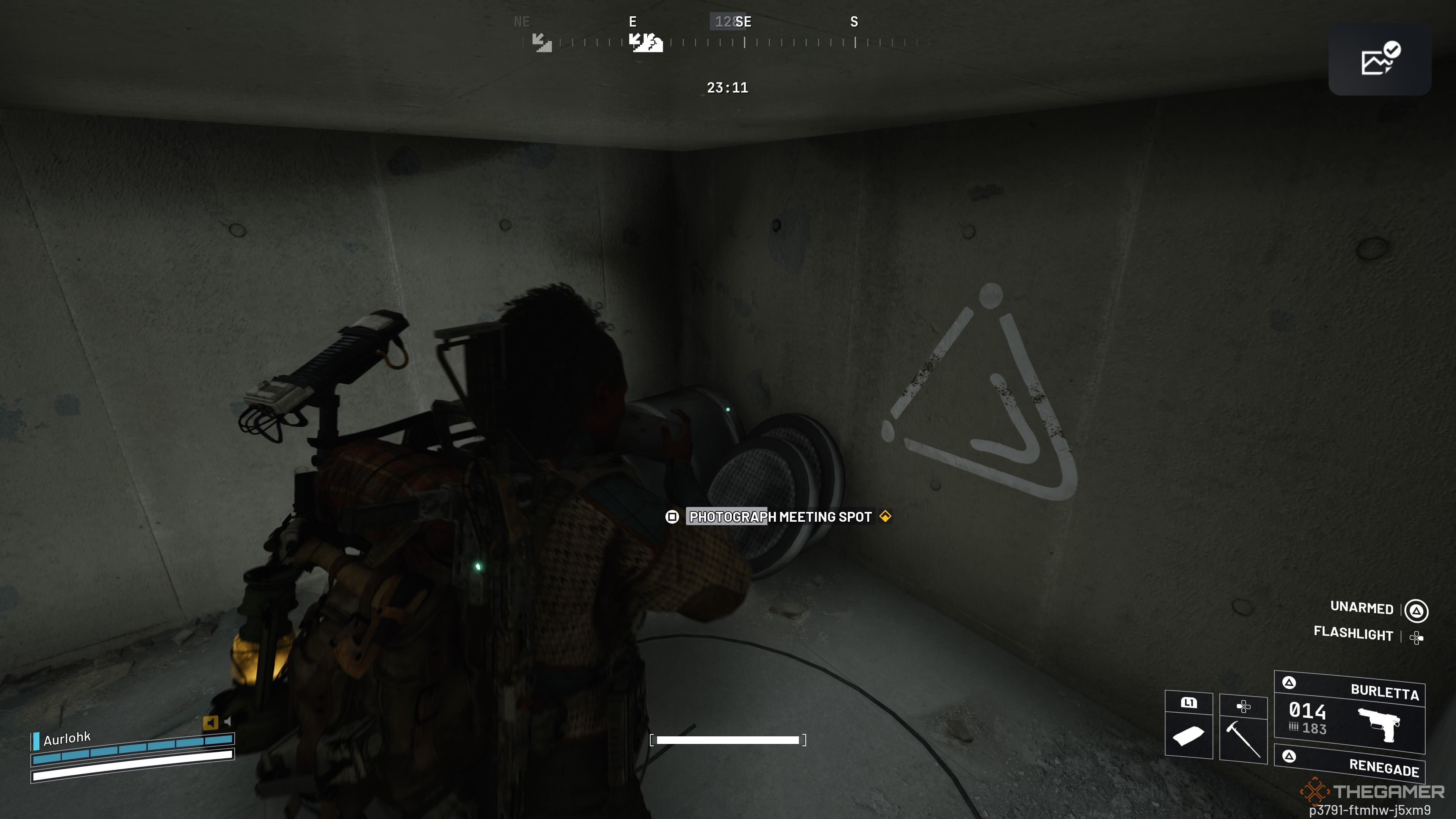 Отправляйтесь в большой коридор к востоку от Robotics Sandbox B. Прежде чем вы доберетесь до вентиляционного вала, ведущего к Seed Vault Airshaft и Seed Vault, вы увидите лестницу. Посмотрите под лестницу, чтобы найти треугольный символ и сообщение с просьбой сделать фотографию — выполнение этого задания завершит вторую часть вашей задачи.