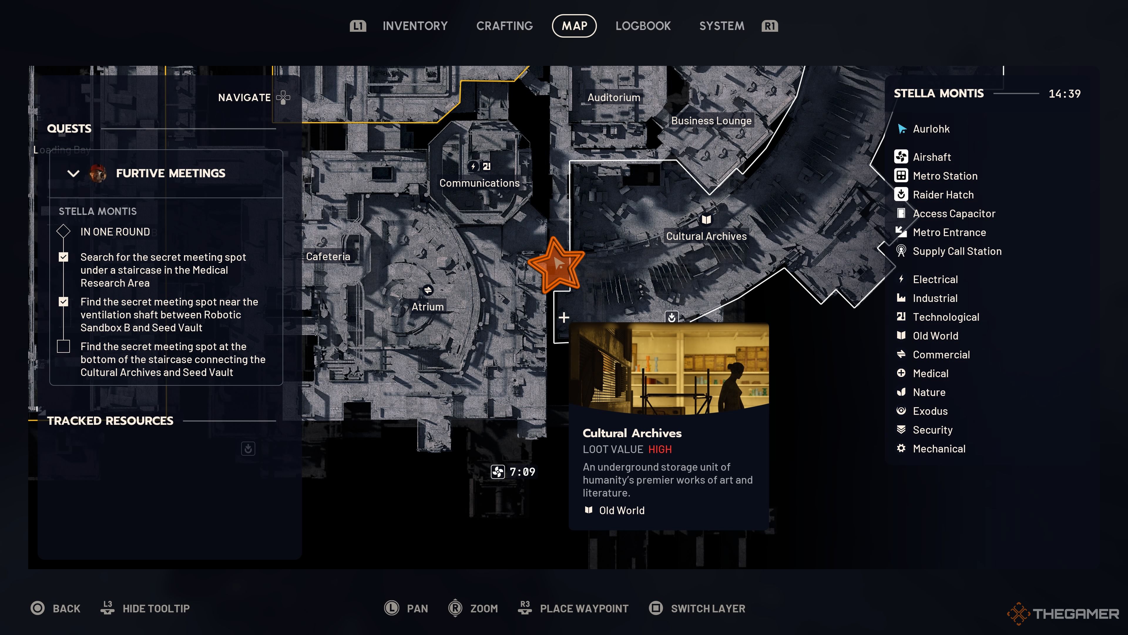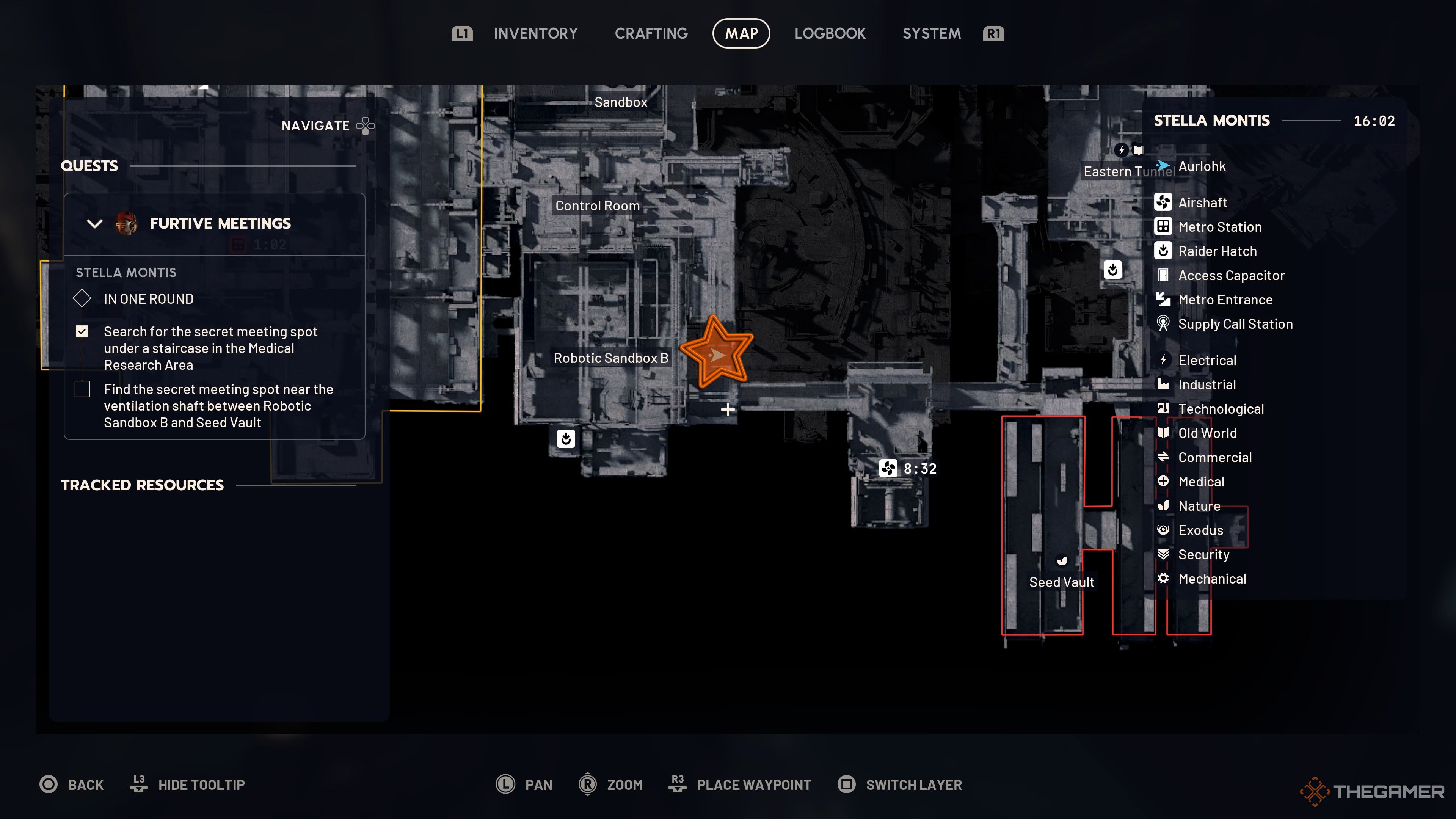 Второе место встречи находится между Robotics Sandbox B и Seed Vault в нижней части Stella Montis. Вы можете добраться туда, пройдя через лестницы в Cultural Archive или придя из Loading Bay.