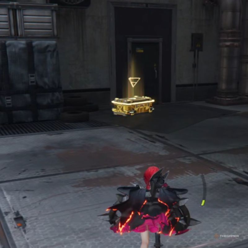 | 18 | Идите прямо на север от вышеуказанного сундука, пока не войдете в небольшую зону с сооружениями. Здесь прыгните на несколько ящиков на конвейерной ленте впереди, чтобы добраться до этого сундука. |