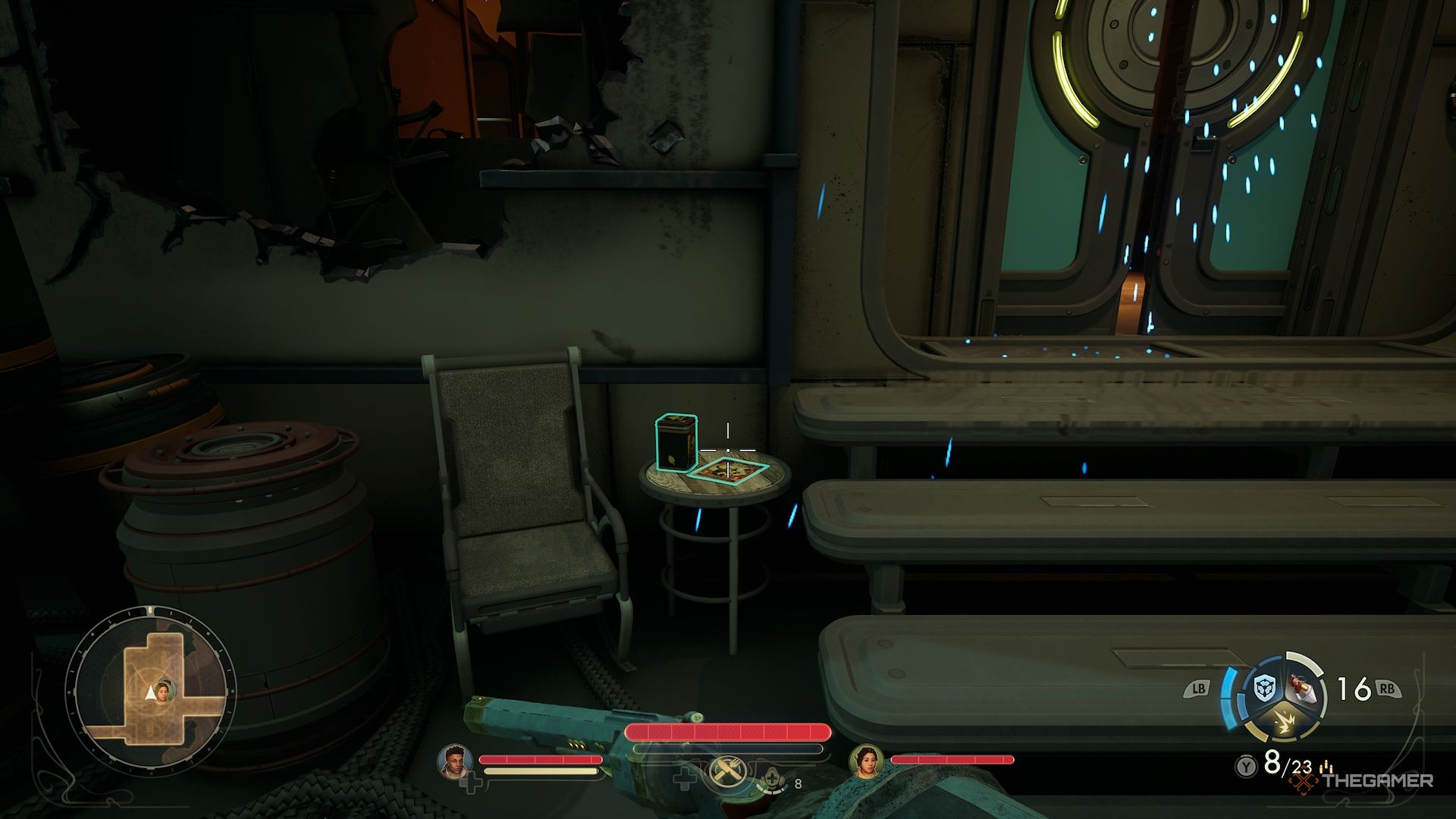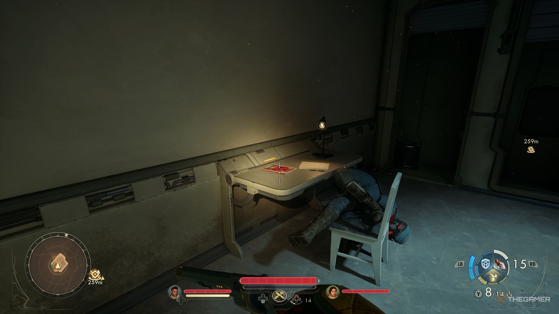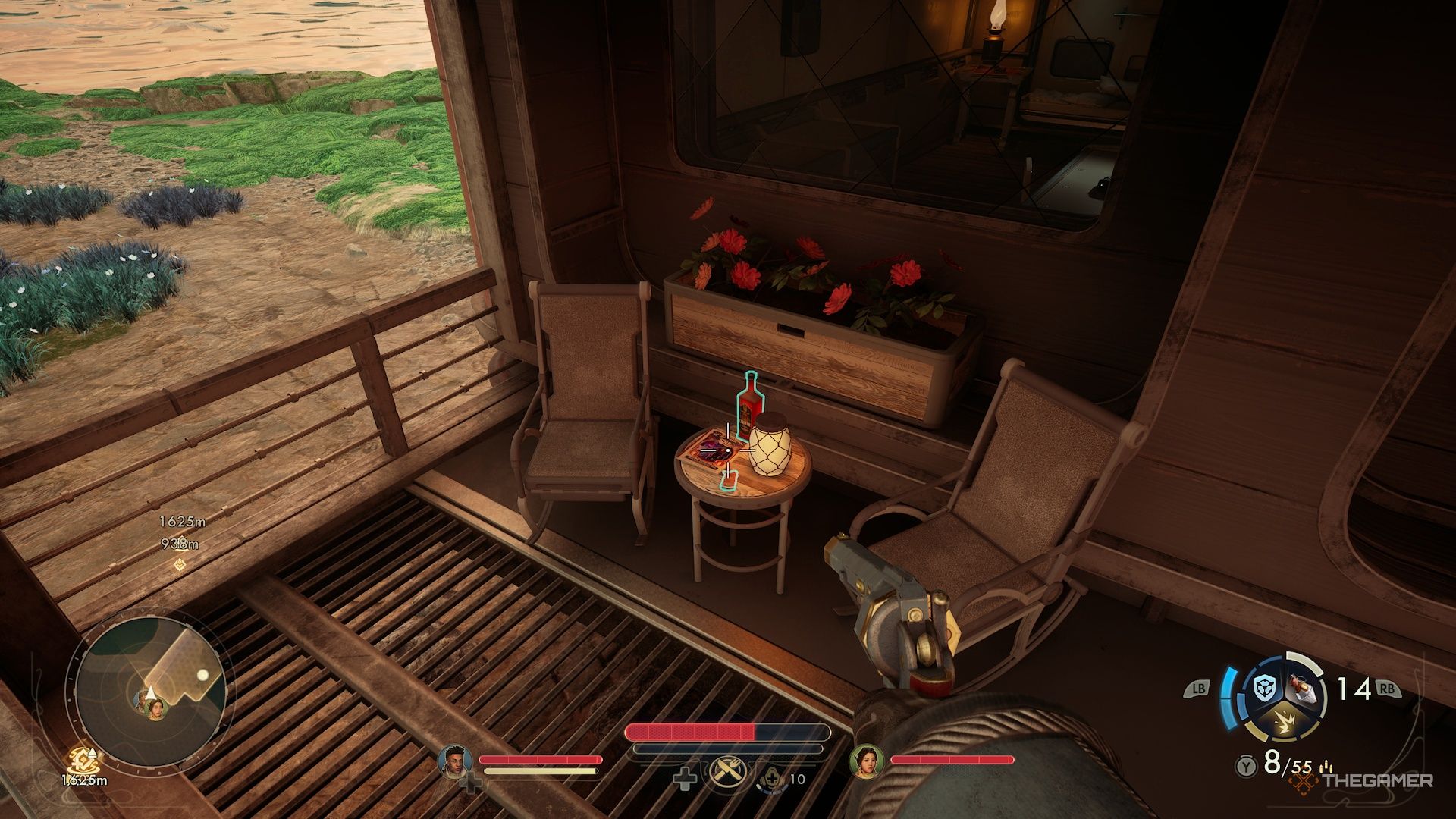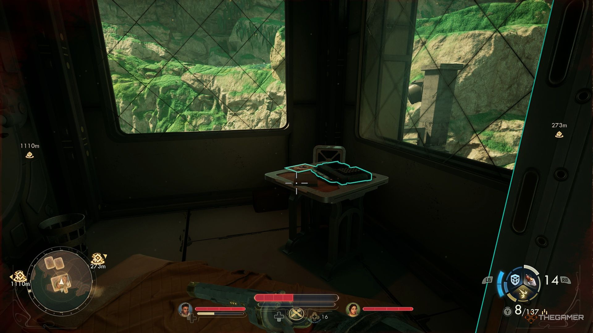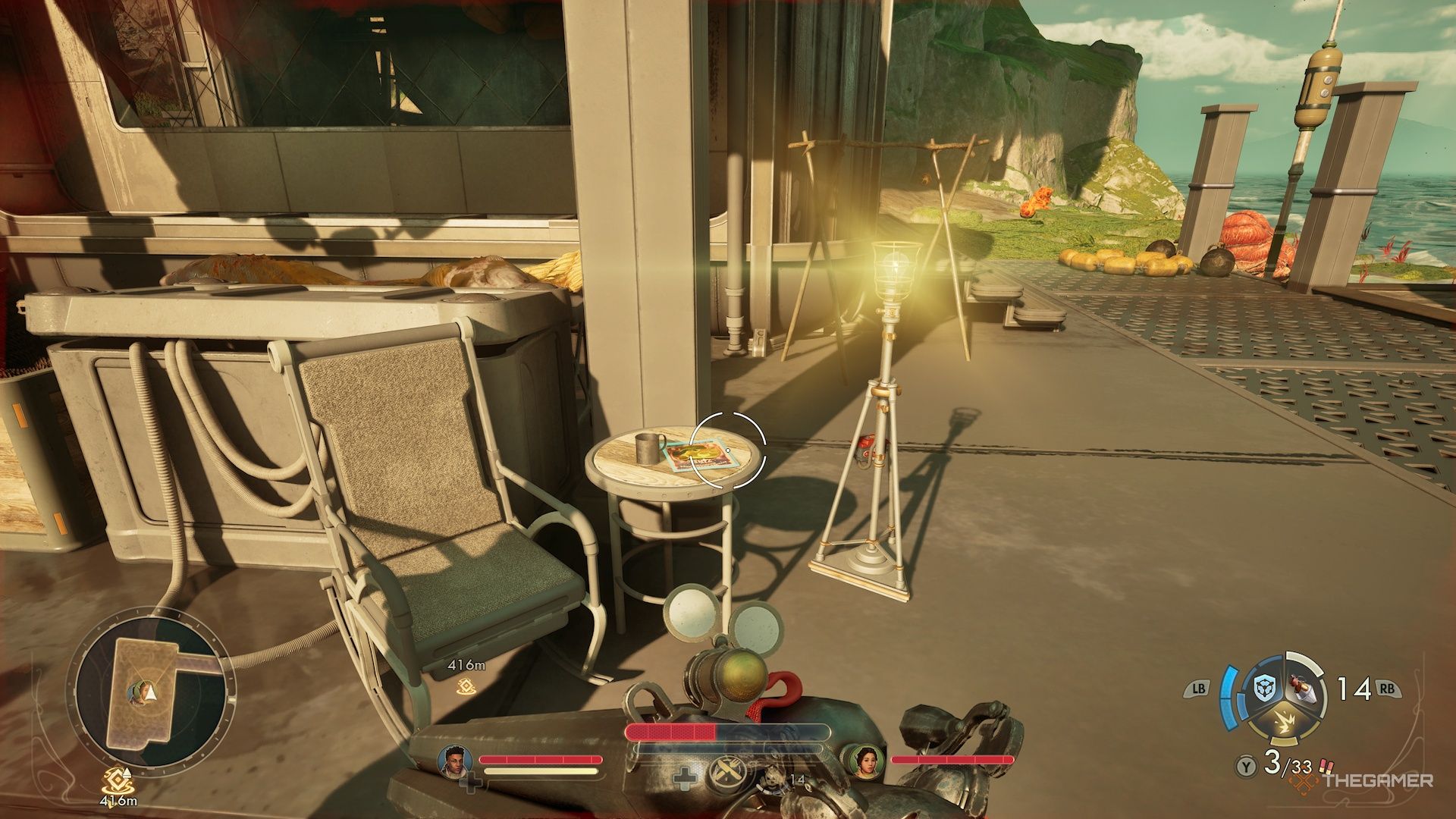 Оказавшись внутри, направляйтесь к небольшой площадке, примыкающей к зданию. Вам нужно будет прыгнуть и перелезть через перила, чтобы добраться до неё. Вторая книга находится на небольшом столе там.
