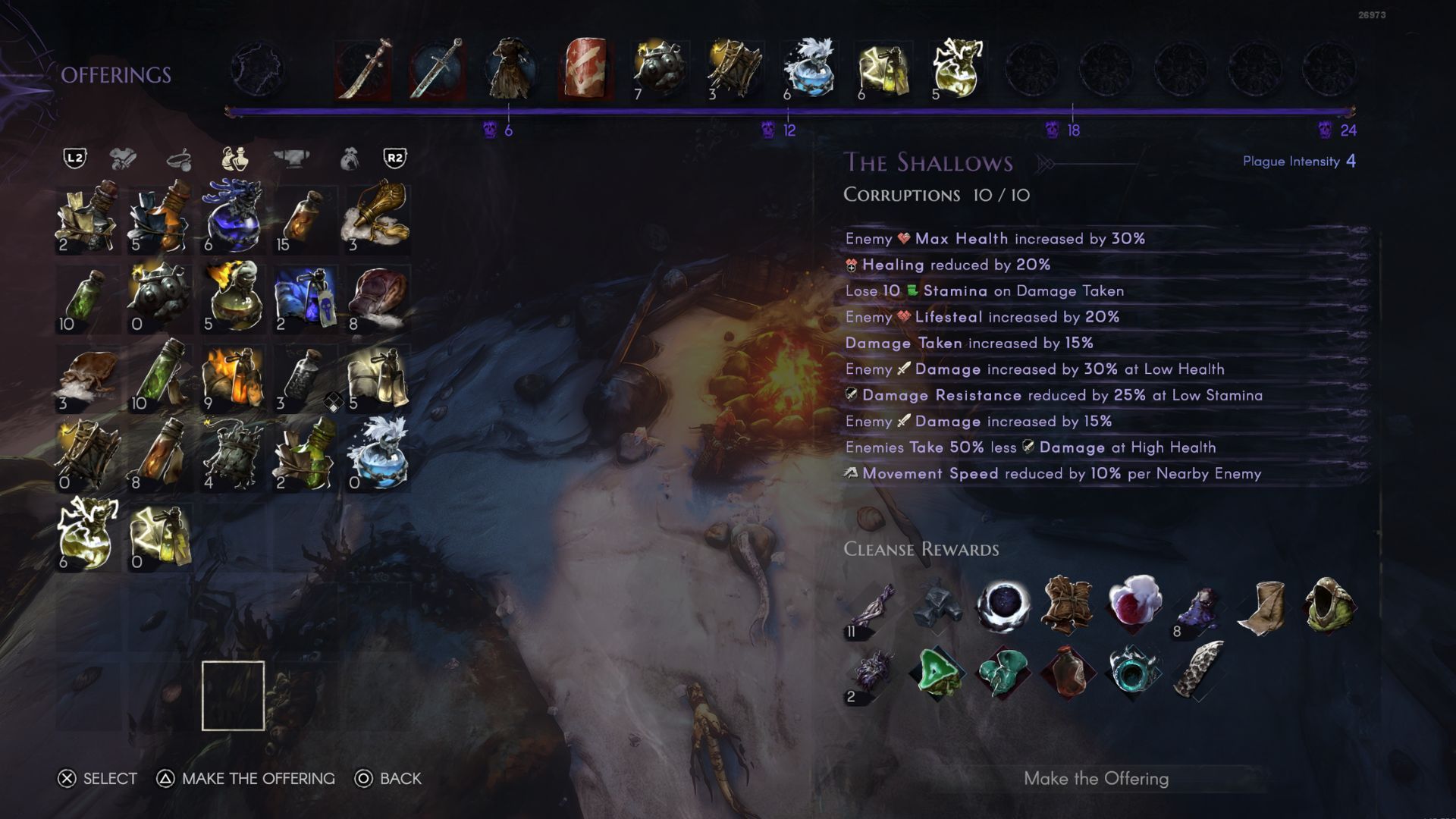 После просмотра списка скверн вы найдёте подробную информацию о наградах за очищение территории. Чем сложнее вспышка Мор, тем лучше будут ваши награды.