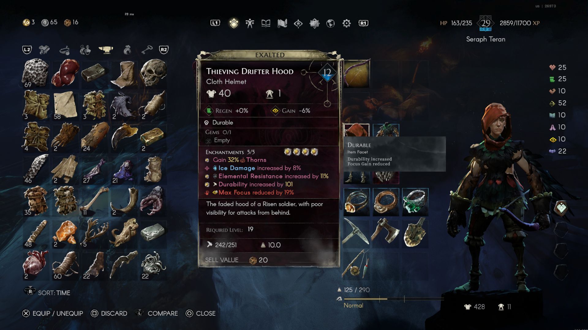 Вы можете улучшить предметы до состояния возвышенных, посетив Смотрителя в Sacrament. Когда вы разговариваете со Смотрителем, вы найдёте опцию ‘возвысить предметы’.
