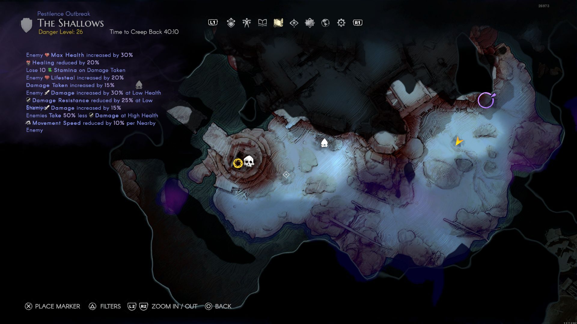В No Rest for the Wicked, вспышки Мора — это локации, заполоненные Мором. Вы заметите эти вспышки на карте как области, покрытые фиолетовой дымкой, что указывает на то, что Мор в настоящее время активен там.