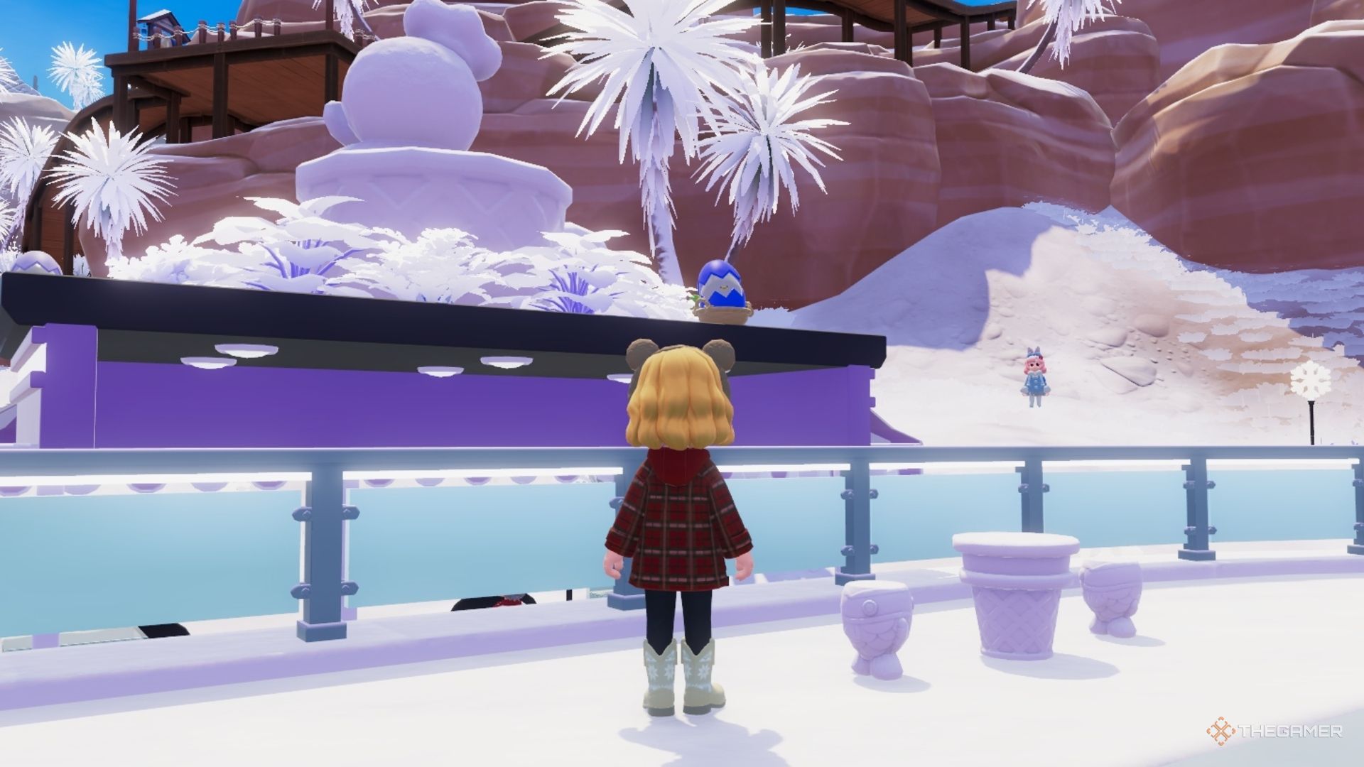 Фиолетовое треснувшее яйцо снова на том же месте: на вершине зимней лавки мороза Массимо. Если вы находитесь на автобусной остановке Winter Utopia, подойдите к лавке Массимо. Посмотрите на крышу с катка, чтобы найти яйцо. Сделайте фотографию и получите награду!