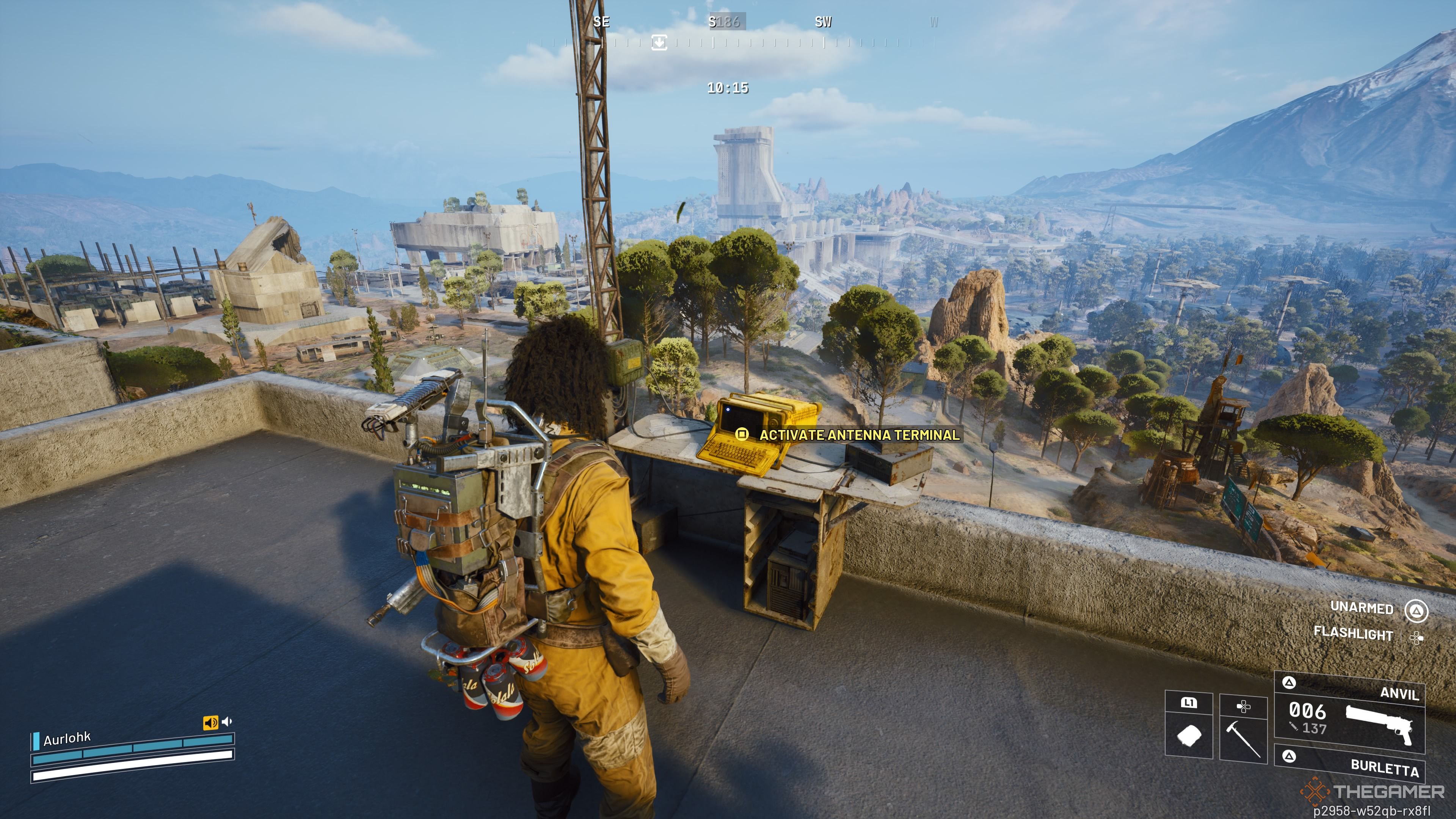 Поднимитесь на крышу здания. Как только вы там окажетесь, найдите небольшой жёлтый компьютер на столе рядом с ограждением и используйте его, чтобы включить компьютерную систему антенны.