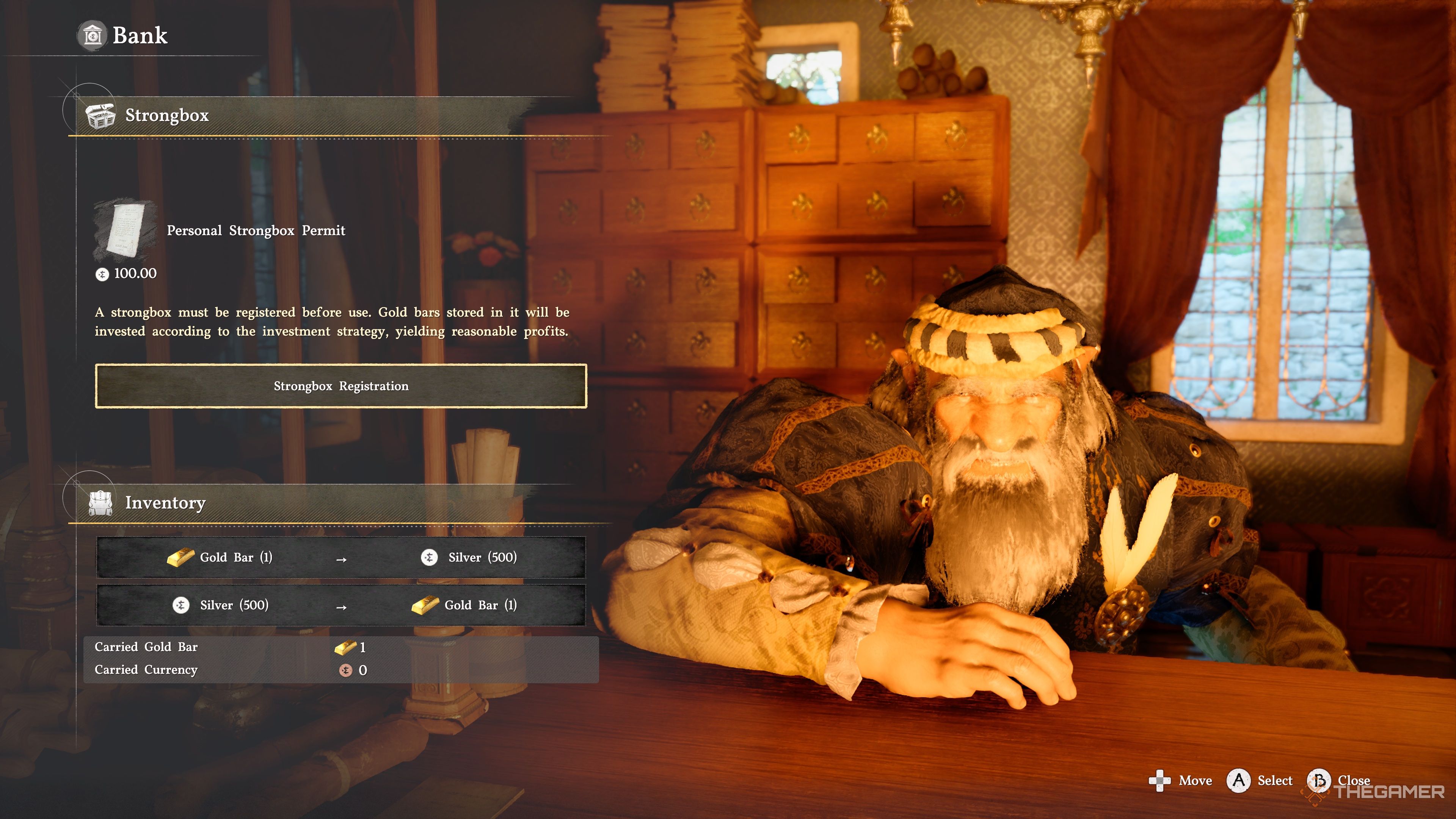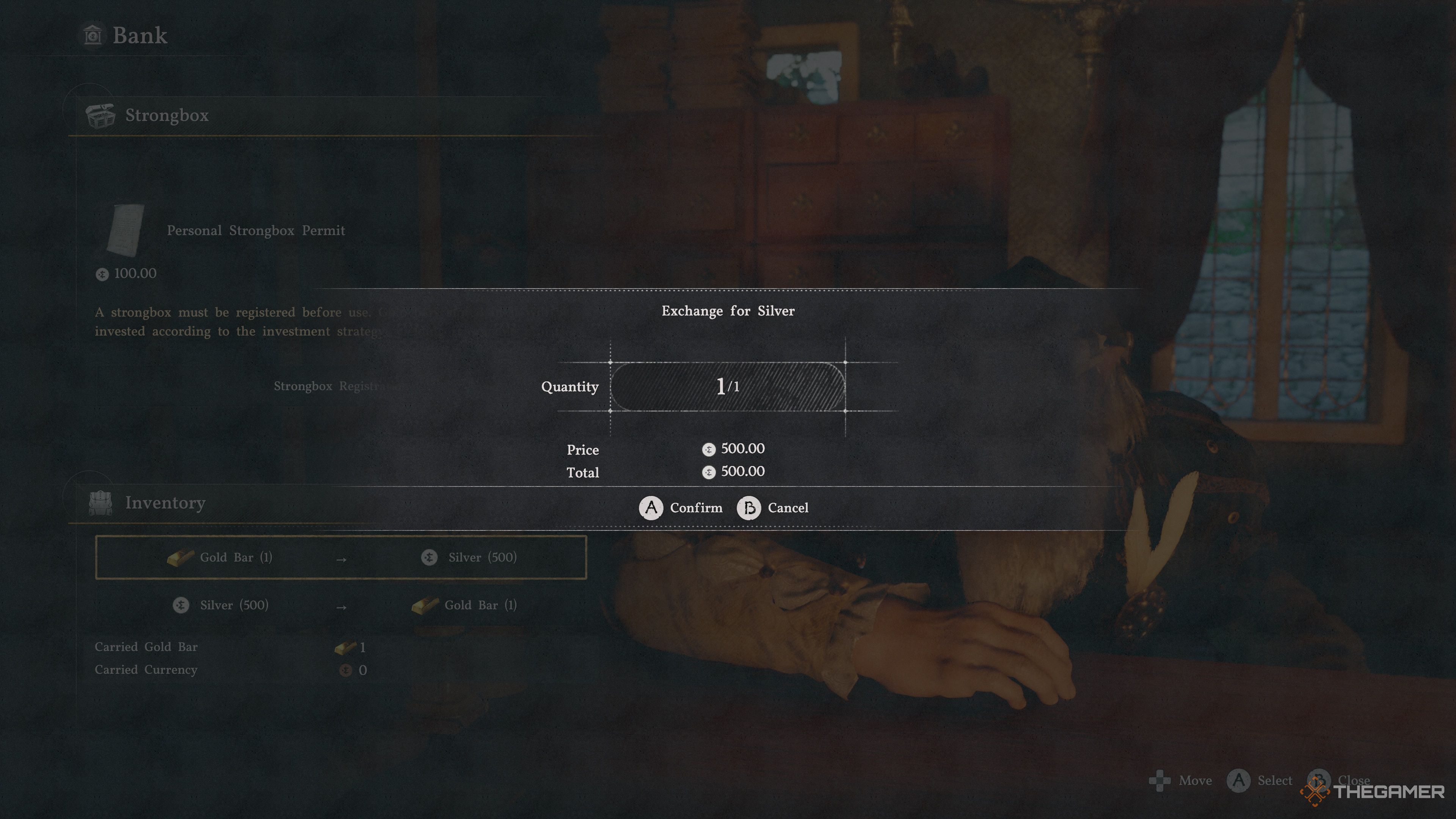Вместо этого, обменяйте золотые слитки в банке, что принесёт вам 500 серебра вместо этого.