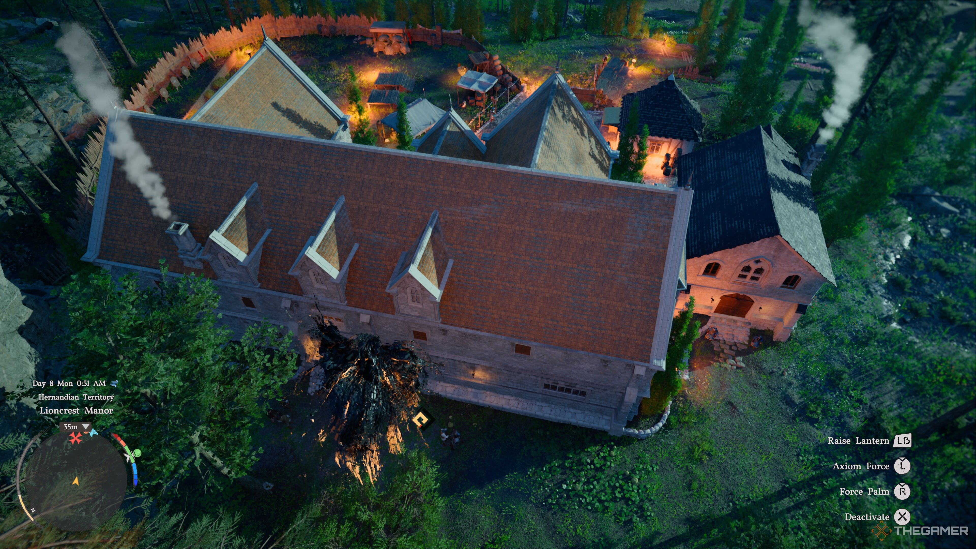 Вы можете попасть в поместье Лайонкрест, либо перебравшись через стены, либо спланировав на крышу со скалы и войдя через окно.