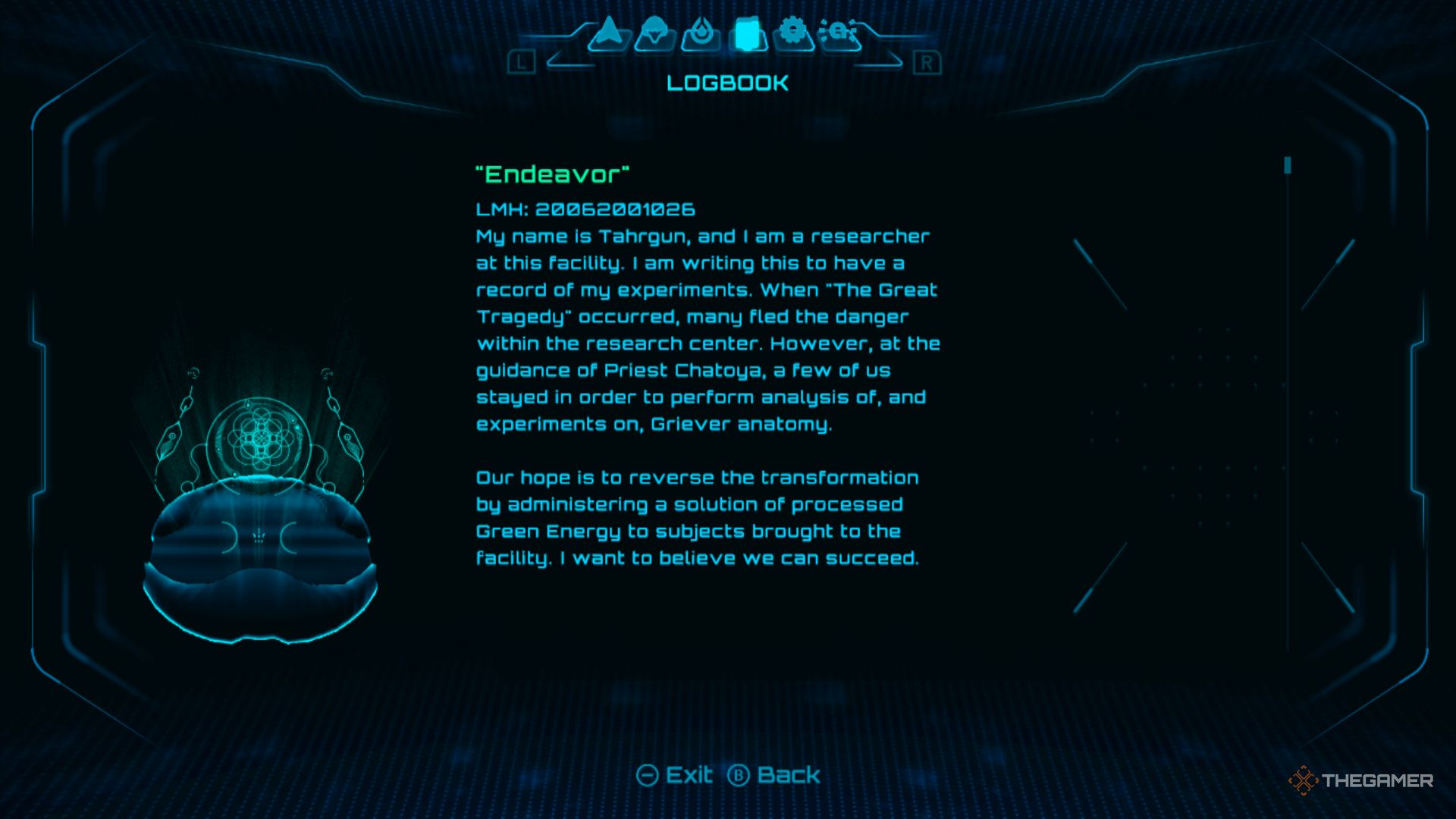 Когда вы сканируете объекты в Metroid Prime, на экране появляется короткое описание. Иногда игра предлагает проверить Журнал для получения более подробной информации. Журнал — это место, где сохраняются все ваши сканы, при условии, что имеется достаточно информации для добавления в запись.