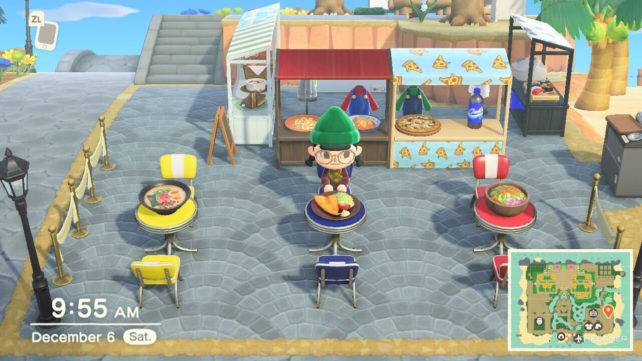 Спроектируйте идеальный фуд-корт, используя любые столы и стулья, которые вам нравятся! Мебель из набора «The Diner» добавит много цвета, но вы найдете множество вариантов в Nook’s Cranny или сможете создать их самостоятельно. Не забудьте приготовить вкусную еду и выставить ее на столы, чтобы создать уютную атмосферу для обеда.
