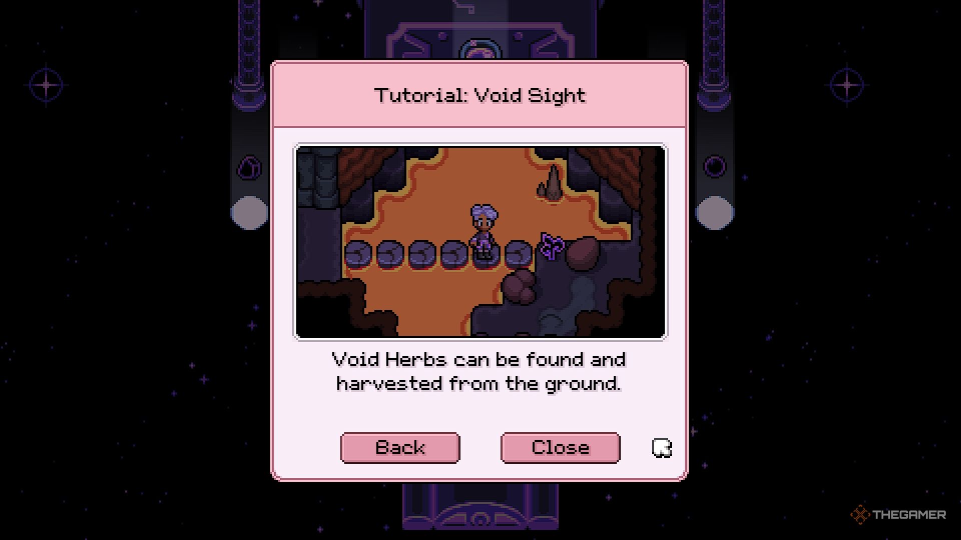 Она даст вам новую способность под названием Void Sight. Это позволит вам видеть специальные материалы, существующие в другом измерении, и вам нужно будет собрать их, чтобы разрушить Печать Руин в шахтах. В частности, вам нужно найти четыре различных материала: Void Stones, Void Herbs, Void Pearls и Void Powder. Это запустит квест по Созданию Void Mass.