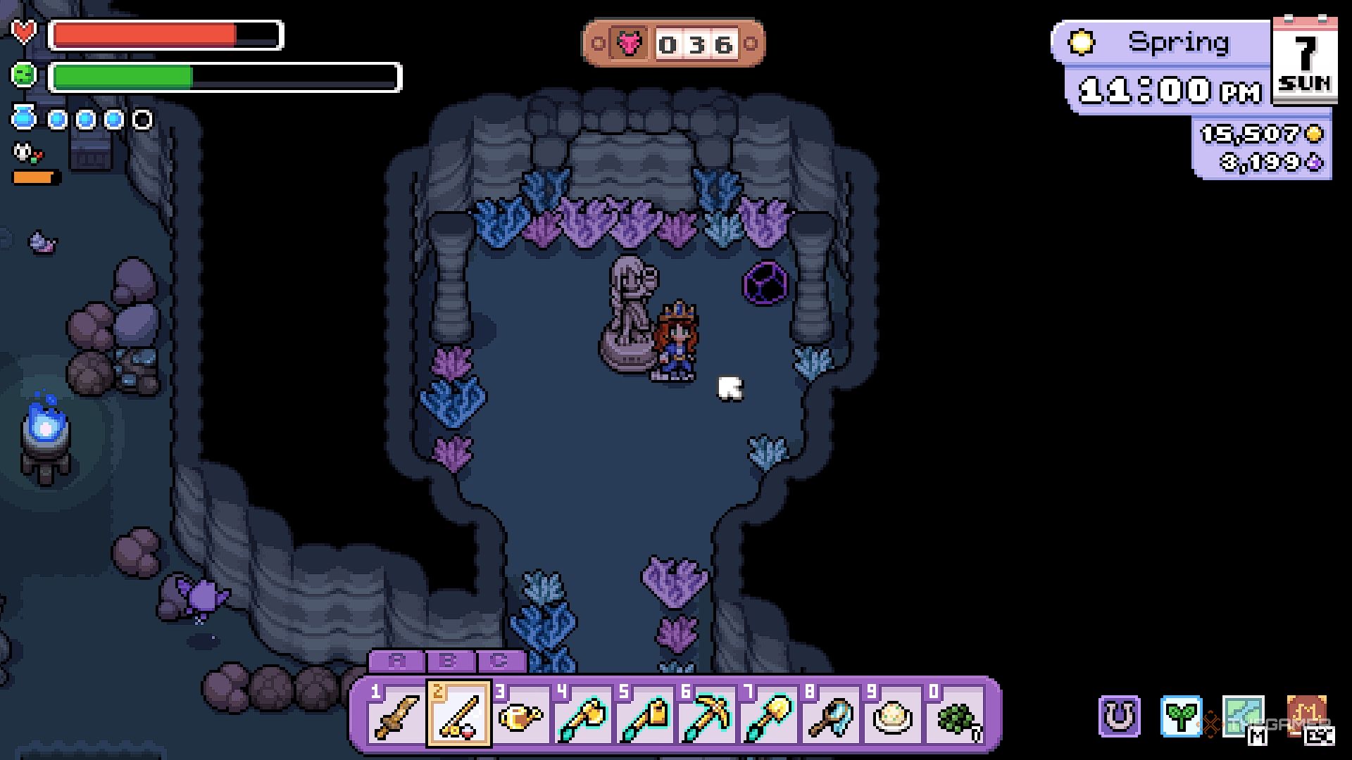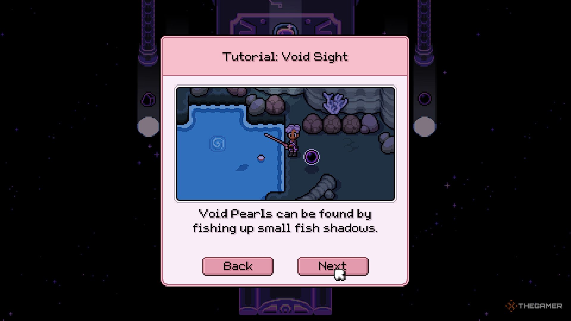 Я рыбачил в шахтах и обнаружил эти крутые вещи, называемые Жемчужинами Пустоты! Они похожи на черные жемчужины, но выглядят гораздо более волшебно. Просто забрось удочку и попробуй поймать их – я обнаружил, что легче целиться в более мелкие тени в воде, чтобы получить больше. Они нужны для алтаря, так что это стоит усилий!