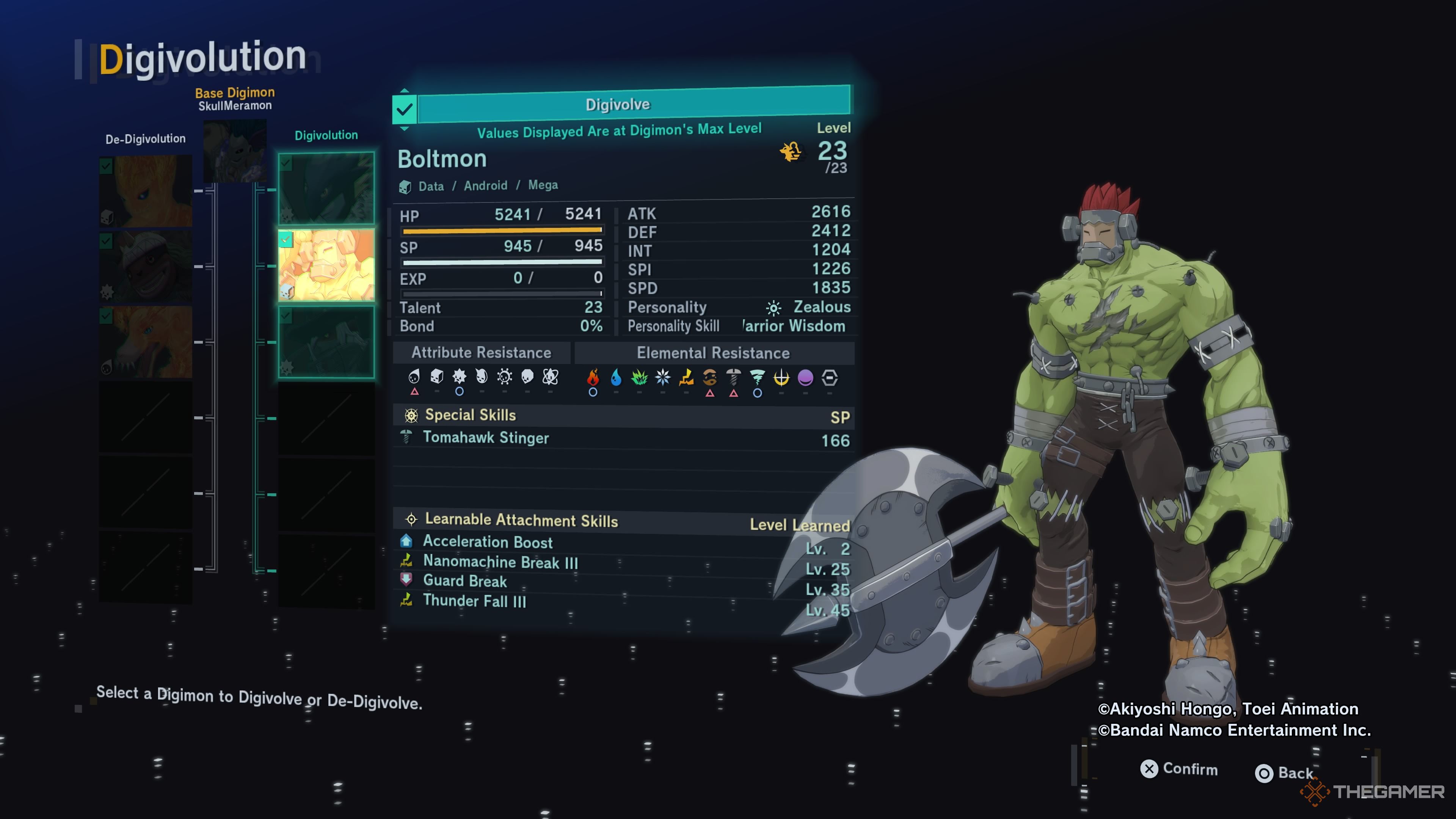 Увеличение характеристик вашей Digimon посредством черт характера на постоянной основе — отличный способ открыть более простые пути Digivolution. Вы можете приобрести эти улучшения, используя меню навыков Agent для каждого типа личности.