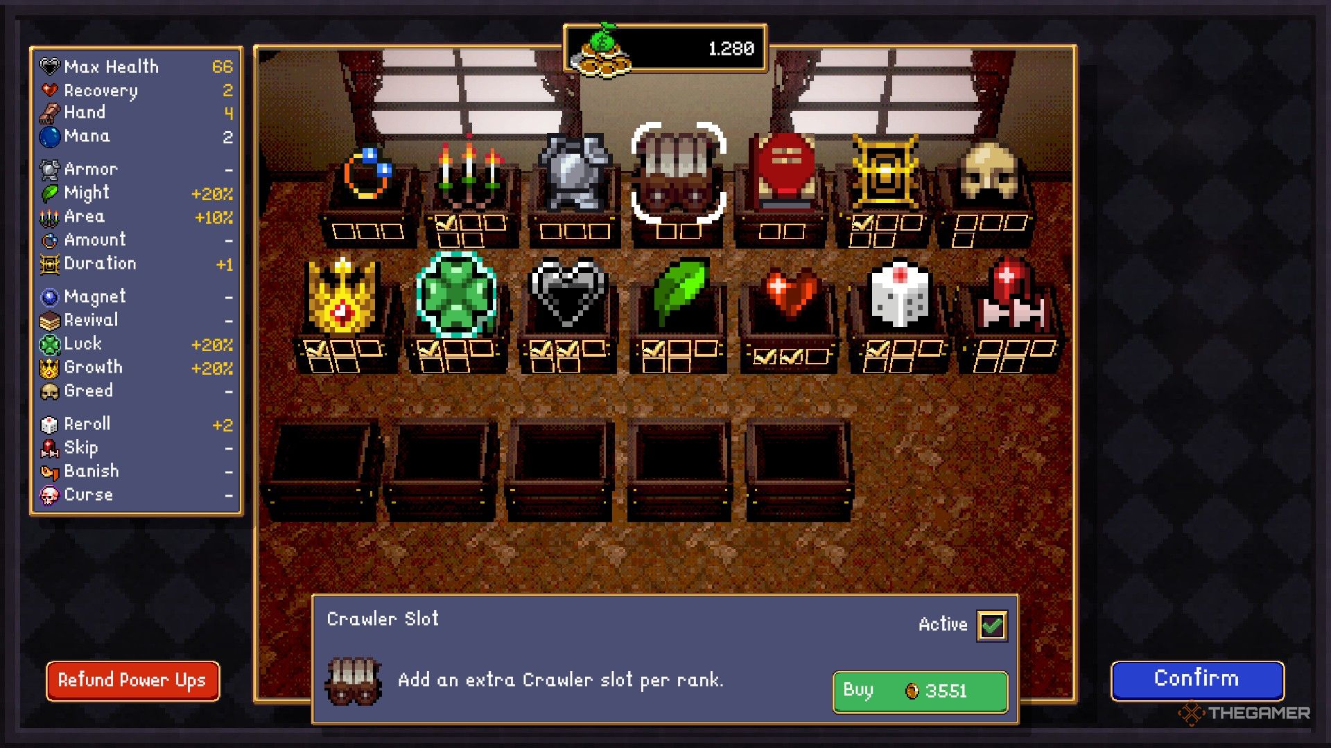 Вы также можете использовать несколько карт Crawler, начав игру с более чем одним персонажем. После завершения области Teeny Bridge вы сможете купить улучшение Crawler Slot Power-Up, которое позволит вам это сделать.