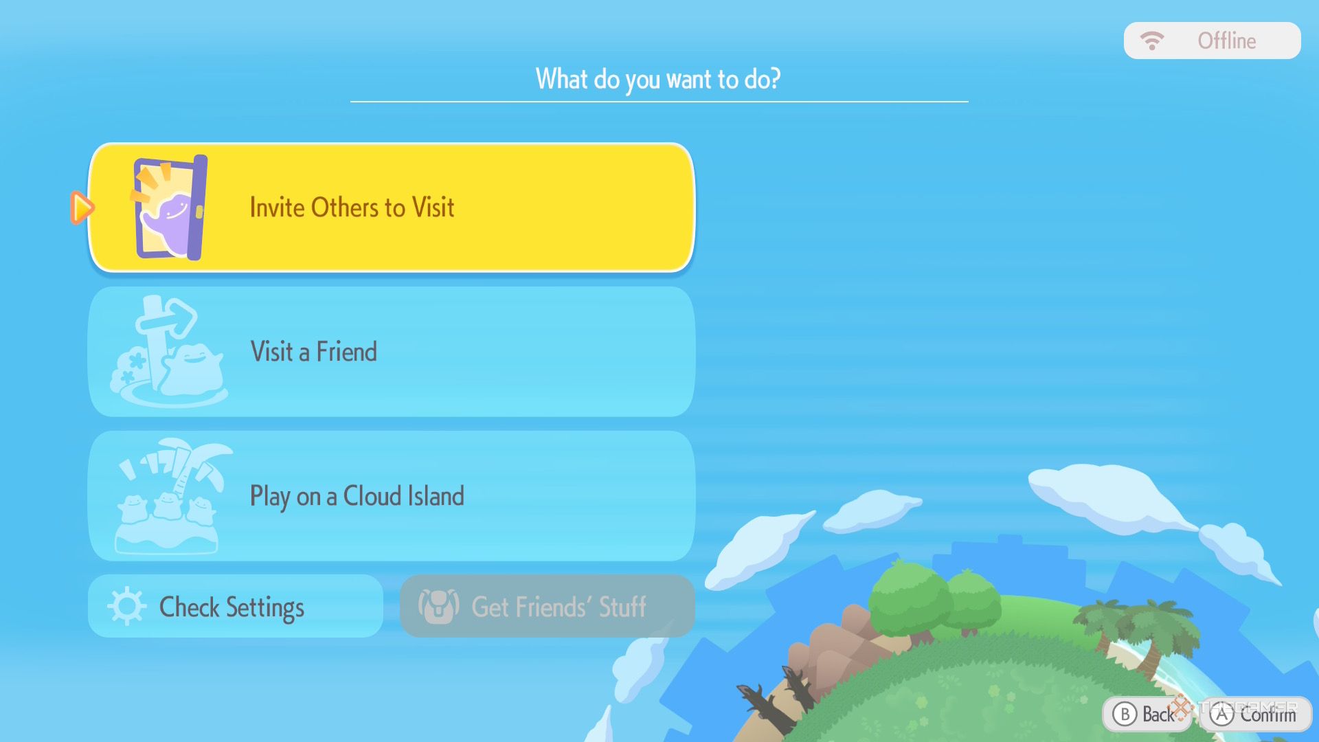 Теперь вы можете начать играть с друзьями и строить свой собственный Облачный остров! Вы также можете попробовать Gameshare, но имейте в виду, что он работает только в Palette Town, а у посещающего игрока будет меньше ресурсов.