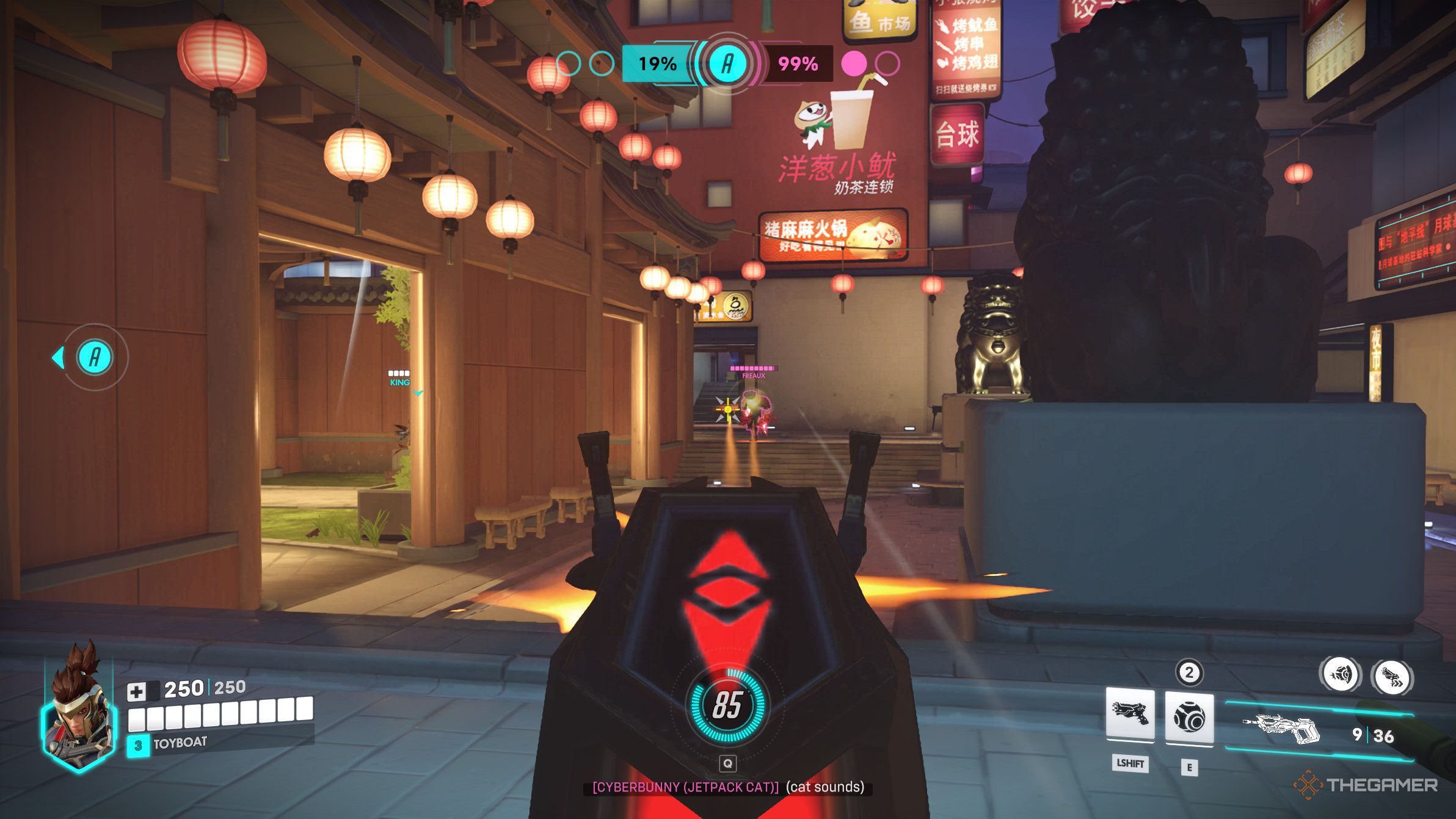 Высшая способность Эмре, Override Protocol, делает его мощным атакующим. При активации он взлетает в воздух и может либо быстро выпускать взрывные залпы, либо заряжаться и выпускать разрушительные мега-выстрелы.