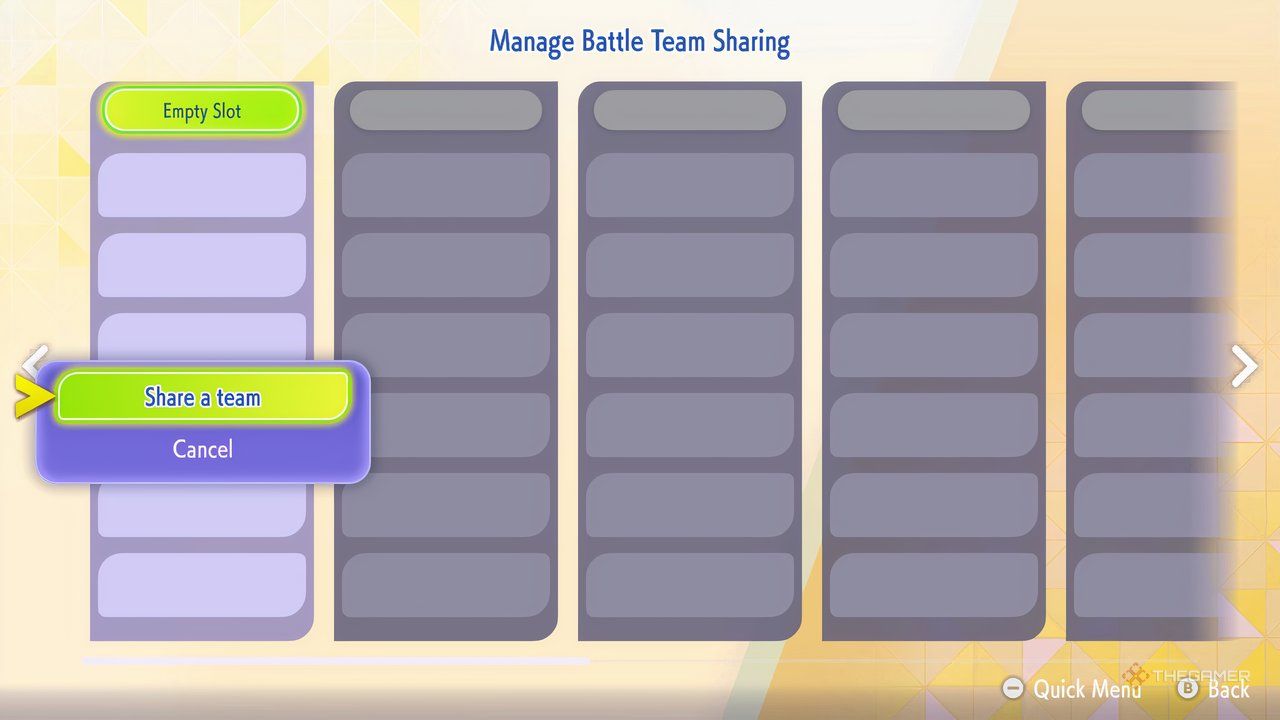 Вы найдёте свободный слот, куда можно добавить одну из ваших боевых команд. Выберите команду, которой хотите поделиться, и появится предварительный просмотр — он будет выглядеть так же, как вы видите команды при их загрузке. Если всё выглядит хорошо, подтвердите, и вы получите сообщение о том, что ваша команда была опубликована.