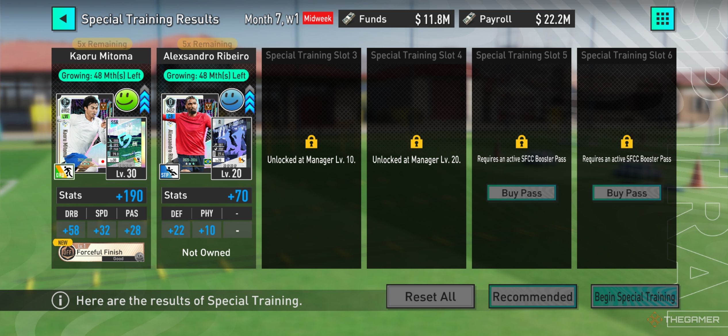 По мере повышения вашего уровня Менеджера вы будете получать доступ к большему количеству слотов, что позволит добавлять больше игроков в Специальную Тренировку.